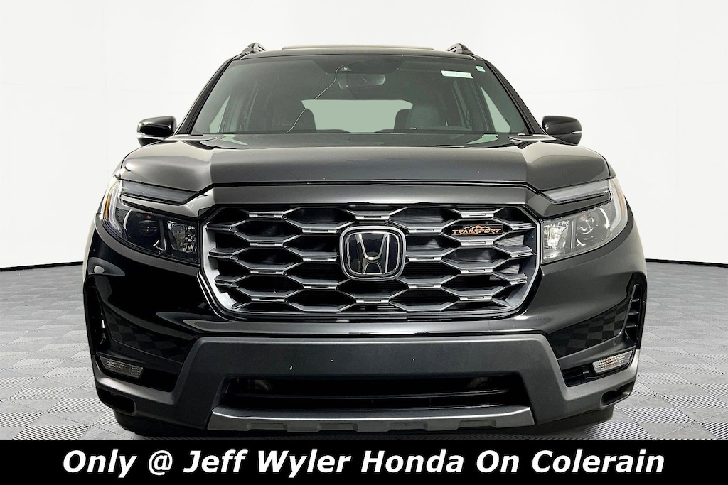 Jeff Wyler Honda of Colerain is pumped up to offer this attractive 2023 Honda Passport TrailSport in Crystal Black Pearl. Well equipped with: 4-Wheel Disc Brakes, 4.334 Axle Ratio, 7 Speakers, A/V remote: CabinControl, ABS brakes, Air Conditioning, Alloy wheels, AM/FM radio: SiriusXM, Apple CarPlay/Android Auto, Auto High-beam Headlights, Auto-dimming Rear-View mirror, Automatic temperature control, Blind Spot Information (BSI) System warning, Brake assist, Bumpers: body-color, Compass, Delay-off headlights, Driver door bin, Driver vanity mirror, Driver's Seat Mounted Armrest, Dual front impact airbags, Dual front side impact airbags, Electronic Stability Control, Emergency communication system: HondaLink Assist, Exterior Parking Camera Rear, Four wheel independent suspension, Front anti-roll bar, Front Bucket Seats, Front Center Armrest, Front dual zone A/C, Front fog lights, Front reading lights, Fully automatic headlights, Garage door transmitter: HomeLink, Heated door mirrors, Heated Front Bucket Seats, Heated front seats, Illuminated entry, Lane departure: Lane Keeping Assist System (LKAS) active, Leather-Trimmed Seats, Low tire pressure warning, Navigation system: Honda Satellite-Linked Navigation System, Occupant sensing airbag, Outside temperature display, Overhead airbag, Overhead console, Panic alarm, Passenger door bin, Passenger seat mounted armrest, Passenger vanity mirror, Power door mirrors, Power driver seat, Power Liftgate, Power moonroof, Power passenger seat, Power steering, Power windows, Radio data system, Radio: 215-Watt Audio System w/7 Speakers, Rear air conditioning, Rear anti-roll bar, Rear reading lights, Rear seat center armrest, Rear window defroster, Rear window wiper, Remote keyless entry, Roof rack: rails only, Security system, Speed control, Speed-sensing steering, Split folding rear seat, Spoiler, Steering wheel mounted audio controls, Tachometer, Telescoping steering wheel, Tilt steering wheel, Traction control, Trip computer, Turn signal indicator mirrors, Variably intermittent wipers, and Wheels: 18" Machine-Finish Alloy.