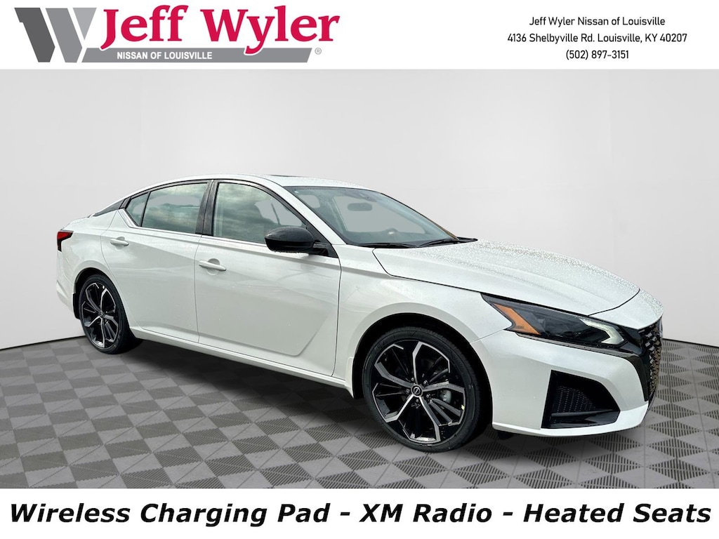 Jeff Wyler Nissan of Louisville is proud to offer this outstanding-looking 2025 Nissan Altima 2.5 SR in Pearl White Tricoat. ** HOME DELIVERY OPTIONS! ** SR Premium Package (2-Way Driver Power Lumbar Support, 4-Way Power Passenger Seat, Dual Zone Automatic HVAC, Heated Front Seats, Leather-Appointed Seat Trim, NissanConnect, Premium Sport Interior Finishers, Remote Engine Start w/Intelligent Climate Control, and Single Panel Moonroof), Nissan Certified Pre-Owned Certified, CVT with Xtronic, 20 Color Interior Accent Lighting, 4-Wheel Disc Brakes, 6 Speakers, ABS brakes, Air Conditioning, Alloy wheels, AM/FM radio: SiriusXM, Auto High-beam Headlights, Blind Spot Warning, Body-Colored Rear Spoiler, Body-Colored Splash Guards, Brake assist, Bumpers: body-color, Cargo Blocks, Clear Bumper Protector, Delay-off headlights, Driver door bin, Driver vanity mirror, Dual front impact airbags, Dual front side impact airbags, Electronic Stability Control, Four wheel independent suspension, Front anti-roll bar, Front Bucket Seats, Front Center Armrest, Front reading lights, Fully automatic headlights, Illuminated entry, Illuminated Kick Plates, Knee airbag, Leather Shift Knob, Low tire pressure warning, NissanConnect featuring Apple CarPlay and Android Auto, Occupant sensing airbag, Outside temperature display, Overhead airbag, Overhead console, Panic alarm, Passenger door bin, Passenger vanity mirror, Power door mirrors, Power driver seat, Power steering, Power windows, Radio data system, Radio: AM/FM Audio System, Rear anti-roll bar, Rear Parking Sensors, Rear reading lights, Rear seat center armrest, Rear side impact airbag, Rear window defroster, Remote keyless entry, Security system, Speed control, Speed-sensing steering, Speed-Sensitive Wipers, Split folding rear seat, Sport Seat Trim, SR Floor Mats/Trunk Mat/Hideaway Nets, Steering wheel mounted audio controls, Tachometer, Telescoping steering wheel, Tilt steering wheel, Traction control, Trip computer, Unique Sport Seats, Variably intermittent wipers, and Wheels: 19" Sport Machined Alloy Our PRE-OWNED vehicles are put through a rigorous 167- POINT QUALITY ASSURANCE INSPECTION along with an average amount of over $1,400.00 SPENT to recondition each vehicle so we can be sure to deliver you the highest quality vehicle like you deserve! ***ONLINE PRICE DOES NOT INCLUDE WYLER FAMILY FIRST PACKAGE*** Stop by 4136 Shelbyville Road to see for yourself, or give us a call @ 502-897-3151 to schedule your test drive! CVT with Xtronic.