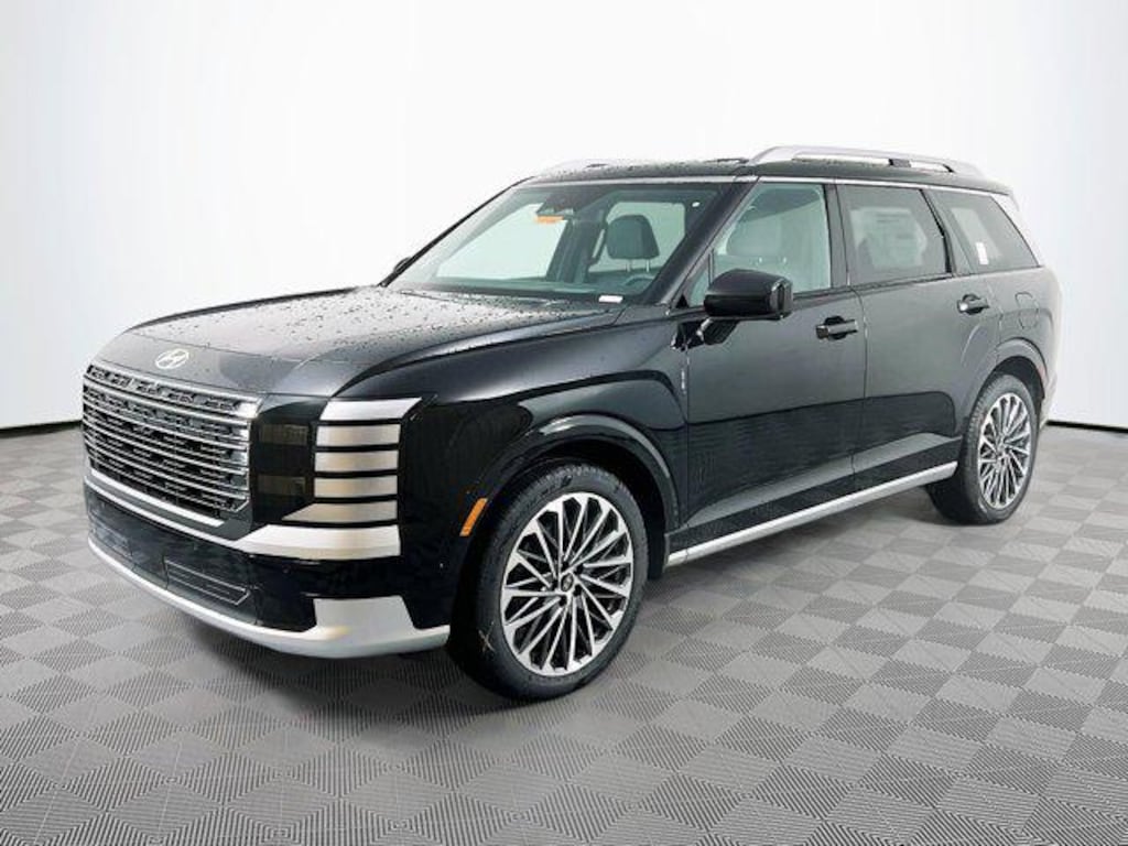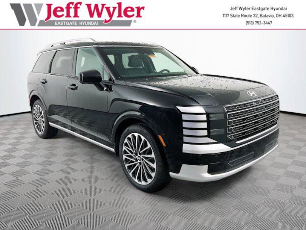 Abyss Black Pearl 2026 Hyundai Palisade Hybrid Calligraphy 2.5L Turbocharged GDI 4-Cylinder Hybrid AWD 6-Speed Automatic Jeff Wyler Eastgate Auto Mall is excited to offer this gorgeous 2026 Hyundai Palisade Hybrid Calligraphy in Abyss Black Pearl. Well equipped with: Option Group 01, 100W Charging Cable, 14 Speakers, 3rd row seats: split-bench, 4-Wheel Disc Brakes, ABS brakes, Air Conditioning, Alloy wheels, AM/FM radio: SiriusXM, Apple CarPlay & Android Auto, Audio memory, Auto High-beam Headlights, Auto-dimming door mirrors, Auto-dimming Rear-View mirror, Auto-leveling suspension, Automatic temperature control, Brake assist, Bumpers: body-color, Cargo Net, Cargo Tray, Carpeted Floor Mats, Compass, Delay-off headlights, Driver door bin, Driver vanity mirror, Dual front impact airbags, Dual front side impact airbags, Electronic Stability Control, Emergency communication system: None, Exterior Parking Camera Rear, First Aid Kit, Four wheel independent suspension, Front anti-roll bar, Front Bucket Seats, Front Center Armrest, Front dual zone A/C, Front reading lights, Fully automatic headlights, Garage door transmitter: HomeLink, Genuine wood console insert, Genuine wood dashboard insert, Heads-Up Display, Heated and Ventilated Front Bucket Seats, Heated door mirrors, Heated front seats, Heated rear seats, Heated steering wheel, HVAC memory, Illuminated entry, Knee airbag, Leather steering wheel, Low tire pressure warning, Memory seat, Mud Guards, Navigation System, Occupant sensing airbag, Outside temperature display, Overhead airbag, Overhead console, Panic alarm, Passenger door bin, Passenger vanity mirror, Power door mirrors, Power driver seat, Power Liftgate, Power moonroof, Power passenger seat, Power steering, Power windows, Premium Nappa Leather Seat Trim, Radio data system, Radio: Infotainment Navigation System, Rain sensing wipers, Rear air conditioning, Rear anti-roll bar, Rear audio controls, Rear reading lights, Rear side impact airbag, Rear window defroster, Rear window wiper, Reclining 3rd row seat, Remote keyless entry, Roadside Assistance Kit, Security system, Speed control, Split folding rear seat, Spoiler, Steering wheel mounted audio controls, Tachometer, Telescoping steering wheel, Tilt steering wheel, Traction control, Trip computer, Turn signal indicator mirrors, Variably intermittent wipers, Ventilated front seats, Ventilated rear seats, and Wheels: 21" x 8.5J Alloy.