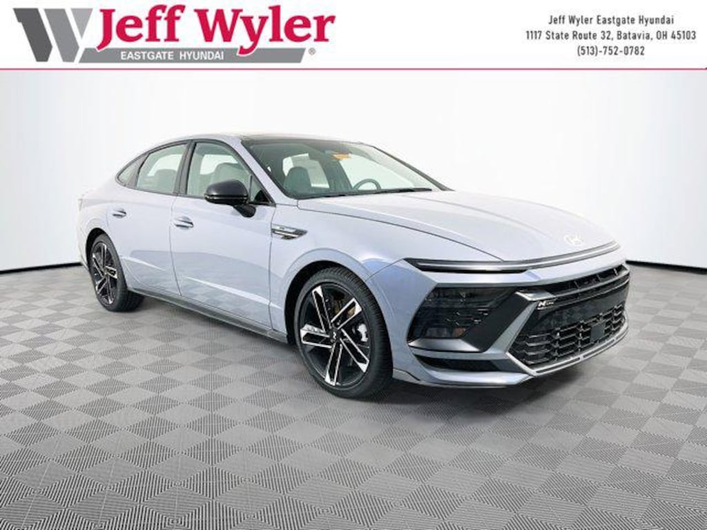 Transmission Blue 2026 Hyundai Sonata N Line I4 FWD 8-Speed 23/32 City/Highway MPG Jeff Wyler Eastgate Auto Mall is honored to offer this gorgeous 2026 Hyundai Sonata N Line in Transmission Blue. Well equipped with: Option Group 01, 12 Speakers, 19" x 8.0J Aluminum Alloy Wheels, 4-Wheel Disc Brakes, ABS brakes, Air Conditioning, Alloy wheels, AM/FM radio: SiriusXM, Apple CarPlay & Android Auto, Auto High-beam Headlights, Auto-dimming Rear-View mirror, Automatic temperature control, Brake assist, Bumpers: body-color, Cargo Side Bins, Cargo Tray, Carpeted Floor Mats, Delay-off headlights, Driver door bin, Driver vanity mirror, Dual front impact airbags, Dual front side impact airbags, Electronic Stability Control, Emergency communication system: None, Exterior Parking Camera Rear, First Aid Kit, Four wheel independent suspension, Front anti-roll bar, Front Bucket Seats, Front Center Armrest, Front dual zone A/C, Front reading lights, Fully automatic headlights, Heated door mirrors, Heated front seats, Heated N Unique Sport Seats, Illuminated entry, Knee airbag, Leather steering wheel, Leatherette/Suede Combination Seating Surfaces, Low tire pressure warning, Navigation System, Occupant sensing airbag, Outside temperature display, Overhead airbag, Overhead console, Panic alarm, Passenger door bin, Passenger vanity mirror, Power door mirrors, Power driver seat, Power moonroof, Power steering, Power windows, Radio data system, Radio: AM/FM/HD/SiriusXM/MP3/Navigation, Rear anti-roll bar, Rear seat center armrest, Rear side impact airbag, Rear window defroster, Remote keyless entry, Security system, Speed control, Speed-sensing steering, Speed-Sensitive Wipers, Split folding rear seat, Spoiler, Sport steering wheel, Steering wheel mounted audio controls, Tachometer, Telescoping steering wheel, Tilt steering wheel, Traction control, Trip computer, and Variably intermittent wipers. 23/32 City/Highway MPG