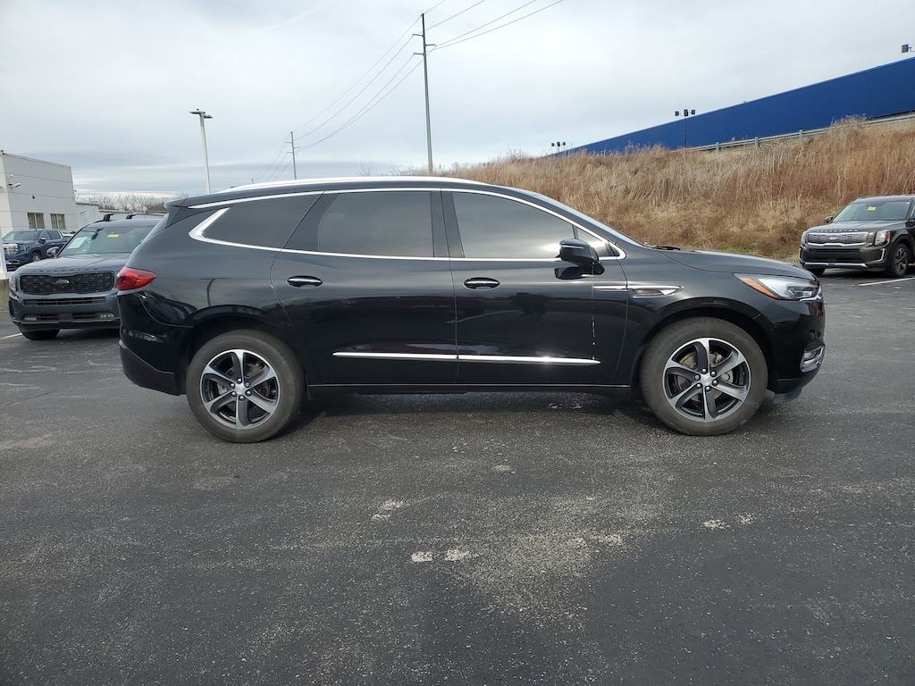 Jeff Wyler Florence Buick GMC is pleased to offer this beautiful 2019 Buick Enclave Essence in Ebony Twilight Metallic. Preferred Equipment Group 1SL, Sport Appearance Package (LPO) (Chrome Surround Grille w/Black Mesh (LPO) and Wheels: 20 Bright Machined Faced Aluminum (LPO)), 120-Volt Power Outlet, 6-Speaker Audio System Feature, 7-Passenger Seating, Alloy wheels, Apple CarPlay/Android Auto, Auto High-beam Headlights, Auto-dimming door mirrors, Auto-dimming Rear-View mirror, Automatic temperature control, Delay-off headlights, Front Bucket Seats, Front dual zone A/C, Front Power Sliding Moonroof, Fully automatic headlights, Heated door mirrors, Heated Driver & Front Passenger Seats, Heated front seats, Illuminated entry, Leather steering wheel, Perforated Leather-Appointed Seat Trim, Power door mirrors, Power Driver Lumbar Control Seat Adjuster, Power driver seat, Power Liftgate, Power Passenger Lumbar Control Seat Adjuster, Power passenger seat, Premium audio system: Buick Infotainment System, Radio: Buick Infotainment Sys AM/FM Stereo w/Nav, Radio: Buick Infotainment System AM/FM Stereo, Rear air conditioning, Rear Parking Sensors, Remote keyless entry, SiriusXM Radio, Spoiler, Steering wheel mounted audio controls, Telescoping steering wheel, Tilt steering wheel, Turn signal indicator mirrors, 3.49 Axle Ratio, 3rd row seats: split-bench, 4-Wheel Disc Brakes, 6 Speakers, ABS brakes, Air Conditioning, AM/FM radio: SiriusXM, Brake assist, Bumpers: body-color, Compass, Driver door bin, Driver vanity mirror, Dual front impact airbags, Dual front side impact airbags, Electronic Stability Control, Emergency communication system: OnStar and Buick connected services capable, Four wheel independent suspension, Front anti-roll bar, Front Center Armrest, Front reading lights, Garage door transmitter, Low tire pressure warning, Occupant sensing airbag, Outside temperature display, Overhead airbag, Overhead console, Panic alarm, Passenger door bin, Passenger vanity mirror, Power steering, Power windows, Radio data system, Rear anti-roll bar, Rear reading lights, Rear window defroster, Rear window wiper, Roof rack: rails only, Security system, Speed control, Speed-sensing steering, Tachometer, Traction control, Trip computer, Variably intermittent wipers, Voltmeter, and Wheel Locks Our PRE-OWNED vehicles are put through a rigorous 167- POINT QUALITY ASSURANCE INSPECTION along with an average amount of over $1,400.00 SPENT to recondition each vehicle so we can be sure to deliver you the highest quality vehicle like you deserve! ***ONLINE PRICE DOES NOT INCLUDE WYLER FAMILY FIRST PACKAGE*** Stop by 1154 Burlington Pike Florence KY 41402to see for yourself, or give us a call @ 859-525-8001 to schedule your test drive!