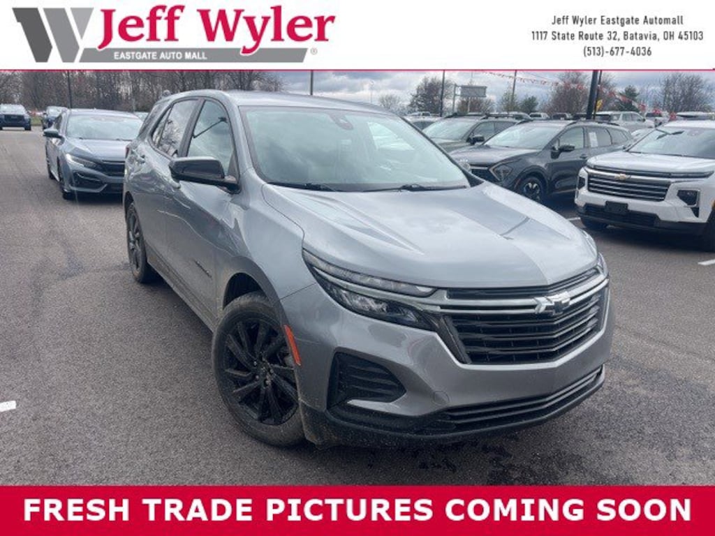 Jeff Wyler Eastgate Auto Mall is honored to offer this wonderful-looking 2023 Chevrolet Equinox LS in Sterling Gray Metallic. Well equipped with: LS Convenience Package (2-Way Power Driver Lumbar Control Seat Adjuster, Deep-Tinted Rear Glass, Driver 8-Way Power Seat Adjuster, and Multi-Color Enhanced Driver Instrument Info Display), Midnight Edition (Body-Color Mirror Caps, Front & Rear Black Bowtie Emblems, Unique Mold-In-Color Black Grille, and Wheels: 18" Gloss Black Aluminum), Preferred Equipment Group 1LS, 17" Aluminum Wheels, 2 Rear USB Charging-Only Ports, 2 USB Ports & Auxiliary Input Jack, 3.50 Final Drive Axle Ratio, 4-Wheel Disc Brakes, 6 Speakers, 6-Speaker Audio System Feature, ABS brakes, Air Conditioning, Alloy wheels, AM/FM radio: SiriusXM, Auto High-beam Headlights, Bluetooth® For Phone, Brake assist, Bumpers: body-color, Compass, Delay-off headlights, Driver 4-Way Manual Seat Adjuster, Driver door bin, Driver vanity mirror, Dual front impact airbags, Dual front side impact airbags, Electronic Stability Control, Emergency communication system: OnStar and Chevrolet connected services capable, Four wheel independent suspension, Front anti-roll bar, Front Bucket Seats, Front Center Armrest, Front Passenger 4-Way Manual Seat Adjuster, Front reading lights, Fully automatic headlights, Heated door mirrors, Illuminated entry, Low tire pressure warning, Occupant sensing airbag, Outside temperature display, Overhead airbag, Overhead console, Panic alarm, Passenger door bin, Passenger vanity mirror, Power door mirrors, Power steering, Power windows, Premium audio system: Chevrolet Infotainment 3, Premium Cloth Seat Trim, Radio data system, Radio: Chevrolet Infotainment 3 System w/AM/FM, Rear anti-roll bar, Rear reading lights, Rear seat center armrest, Rear window defroster, Rear window wiper, Remote keyless entry, Remote Start, Security system, SiriusXM Radio, Speed control, Speed-sensing steering, Split folding rear seat, Spoiler, Steering wheel mounted audio controls, Tachometer, Telescoping steering wheel, Tilt steering wheel, Traction control, Trip computer, Variably intermittent wipers, and Wireless Apple CarPlay/Wireless Android Auto. CARFAX One-Owner. Ask about available certifications. Used vehicles 10 years of age or newer with less than 100,000 miles are eligible for the Wyler Assurance Program, but eligible vehicles must pass our reconditioning process and multi-point inspection. Provided the vehicle passes inspection, vehicles will be eligible for the 6 month/6,000 mile limited warranty. The 6 month/6,000 mile limited warranty is NOT available on AS-IS vehicles, wholesale vehicles, lease buyback/pass-thru vehicles or un-inspected vehicles. Note that this program can also apply to vehicles where the remaining factory coverage is less than 6 months or 6,000 miles. Please check the Federal Trade Commission (FTC) Buyers guide on the vehicle for full details as to whether or not warranty coverage may apply. Contact Dealer for additional details. The Wyler Assurance 6 month/6,000 Mile limited warranty ends 6 months from the date of the Retail Purchase Agreement (BUYERS ORDER) or when the vehicle's odometer registers 6,000 additional miles to the mileage listed on the BUYERS ORDER, whichever comes first. Your Deductible - The warranty holder on your contract pays the first $100 of each covered repair.