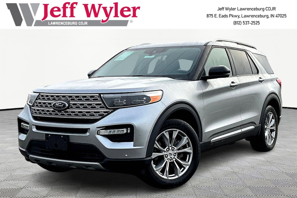 Jeff Wyler Chrysler Dodge Jeep of Lawrenceburg is excited to offer this good-looking 2021 Ford Explorer Limited in Silver Metallic. Equipment Group 301A, Limited Convenience Package (110V/150W AC Power Outlet, 3rd Row PowerFold Seat, Hands-Free Foot-Activated Liftgate, Memory Driver's Seat, Power Tilt/Telescoping Steering Column, and Sideview Mirrors w/Gloss Black Caps), 4WD, 12 Speakers, 20" Premium Painted Aluminum Wheels, 3.58 Non-Limited-Slip Rear Axle Ratio, 3rd row seats: bench, 4-Wheel Disc Brakes, ABS brakes, Air Conditioning, Alloy wheels, AM/FM radio: SiriusXM, Auto High-beam Headlights, Auto-dimming Rear-View mirror, Automatic temperature control, Brake assist, Bumpers: body-color, Compass, Delay-off headlights, Driver door bin, Driver vanity mirror, Dual front impact airbags, Dual front side impact airbags, Electronic Stability Control, Emergency communication system: SYNC 3 911 Assist, Exterior Parking Camera Rear, FordPass Connect, Four wheel independent suspension, Front anti-roll bar, Front Bucket Seats, Front Center Armrest, Front dual zone A/C, Front fog lights, Front License Plate Bracket, Front reading lights, Fully automatic headlights, Garage door transmitter: HomeLink, Heated door mirrors, Heated front seats, Heated rear seats, Heated steering wheel, Illuminated entry, Knee airbag, Leather Heated/Ventilated Captain's Chairs, Leather steering wheel, Low tire pressure warning, Navigation System, Occupant sensing airbag, Outside temperature display, Overhead airbag, Overhead console, Panic alarm, Passenger door bin, Passenger vanity mirror, Power door mirrors, Power driver seat, Power Liftgate, Power passenger seat, Power steering, Power windows, Radio data system, Radio: B&O Sound System by Bang & Olufsen, Rain sensing wipers, Rear air conditioning, Rear anti-roll bar, Rear reading lights, Rear window defroster, Rear window wiper, Remote keyless entry, Roof rack: rails only, Security system, Speed control, Speed-sensing steering, Speed-Sensitive Wipers, Split folding rear seat, Spoiler, Steering wheel mounted audio controls, SYNC 3 Communications & Entertainment System, SYNC 3/Apple CarPlay/Android Auto, Tachometer, Telescoping steering wheel, Tilt steering wheel, Traction control, Trip computer, Turn signal indicator mirrors, Twin Panel Moonroof, Variably intermittent wipers, Ventilated front seats, and Voice-Activated Touchscreen Navigation System Our PRE-OWNED vehicles are put through a rigorous 167- POINT QUALITY ASSURANCE INSPECTION along with an average amount of over $1,400.00 SPENT to recondition each vehicle so we can be sure to deliver you the highest quality vehicle like you deserve! ***ONLINE PRICE DOES NOT INCLUDE WYLER FAMILY FIRST PACKAGE*** Stop by 4136 Shelbyville Road to see for yourself, or give us a call @ 502-897-3151 to schedule your test drive! Ask about available certifications.