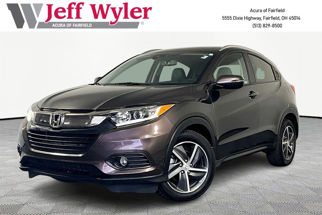 Jeff Wyler Acura of Fairfield is honored to offer this gorgeous 2021 Honda HR-V EX-L in Purple. 17" Machine-Finished Alloy Wheels, 4-Wheel Disc Brakes, 5.436 Axle Ratio, 6 Speakers, ABS brakes, Air Conditioning, Alloy wheels, AM/FM radio: SiriusXM, Apple CarPlay/Android Auto, Auto High-beam Headlights, Auto-dimming Rear-View mirror, Automatic temperature control, Brake assist, Bumpers: body-color, Delay-off headlights, Driver door bin, Driver vanity mirror, Dual front impact airbags, Dual front side impact airbags, Electronic Stability Control, Emergency communication system, Exterior Parking Camera Rear, Forward collision: Collision Mitigation Braking System (CMBS) + FCW mitigation, Front anti-roll bar, Front Bucket Seats, Front Center Armrest, Front fog lights, Front reading lights, Front wheel independent suspension, Fully automatic headlights, Heated door mirrors, Heated Front Bucket Seats, Heated front seats, Illuminated entry, Leather-Trimmed Seat Trim, Low tire pressure warning, Occupant sensing airbag, Outside temperature display, Overhead airbag, Panic alarm, Passenger door bin, Passenger vanity mirror, Power door mirrors, Power moonroof, Power steering, Power windows, Radio data system, Radio: AM/FM/HD Audio System (180-Watt), Rear anti-roll bar, Rear window defroster, Rear window wiper, Remote keyless entry, Roof rack: rails only, Security system, SiriusXM Radio, Speed control, Speed-sensing steering, Split folding rear seat, Spoiler, Steering wheel mounted audio controls, Tachometer, Telescoping steering wheel, Tilt steering wheel, Traction control, Trip computer, Turn signal indicator mirrors, and Variably intermittent wipers ***ONLINE PRICE DOES NOT INCLUDE WYLER FAMILY FIRST PACKAGE*** Clean CARFAX. Odometer is 21959 miles below market average! Priced below KBB Fair Purchase Price!Proudly Serving: Cincinnati, Dayton, Columbus, Louisville, Lexington, Indianapolis, Hamilton, Florence, Alexandria, Beavercreek, Springdale, West Chester, Monroe, Fairfield, Kenwood, Newport and all of greater Cincinnati Ohio, Indiana, and Northern Kentucky.