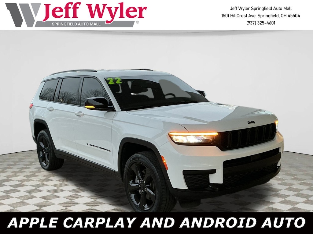 Jeff Wyler Springfield Auto Mall is excited to offer this good-looking 2022 Jeep Grand Cherokee L Altitude in Bright White Clearcoat. Well equipped with: Altitude Appearance Package, Quick Order Package 22B Altitude (115V Auxiliary Power Outlet, 3rd Row Charge-Only USB Ports, Black Headliner, Delete Laredo Badge, Gloss Black Exterior Accents, Heated Front Seats, Heated Steering Wheel, Leather Trimmed Bucket Seats, Leather Wrapped Steering Wheel, Molded In Color Black/Gloss Black Roof Rails, Power Liftgate, Rain Sensitive Windshield Wipers, Remote Start System, Selectable Tire Fill Alert, Wheels: 20" x 8.5" Gloss Black Painted Aluminum, and Wireless Charging Pad), 3.45 Rear Axle Ratio, 3rd row seats: split-bench, 4-Wheel Disc Brakes, 6 Speakers, ABS brakes, Air Conditioning, Alloy wheels, AM/FM radio, Anti-whiplash front head restraints, Automatic temperature control, Brake assist, Bumpers: body-color, Cloth Seats, Compass, Delay-off headlights, Driver door bin, Driver vanity mirror, Dual front impact airbags, Dual front side impact airbags, Electronic Stability Control, Emergency communication system, Four wheel independent suspension, Front anti-roll bar, Front Bucket Seats, Front Center Armrest w/Storage, Front dual zone A/C, Front reading lights, Fully automatic headlights, Heated door mirrors, Illuminated entry, Knee airbag, Low tire pressure warning, Manual Fold Seatbacks, Normal Duty Suspension, Occupant sensing airbag, Outside temperature display, Overhead airbag, Overhead console, Panic alarm, ParkView Rear Back-Up Camera, Passenger door bin, Passenger vanity mirror, Power door mirrors, Power driver seat, Power steering, Power windows, Radio data system, Radio: Uconnect 5 w/8.4" Display, Rear air conditioning, Rear anti-roll bar, Rear reading lights, Rear window defroster, Rear window wiper, Reclining 3rd row seat, Remote keyless entry, Security system, Speed control, Speed-Sensitive Wipers, Split folding rear seat, Spoiler, Steering wheel mounted audio controls, Tachometer, Telescoping steering wheel, Tilt steering wheel, Traction control, Trip computer, Variably intermittent wipers, Voltmeter, and Wheels: 18" x 8.0" Fully Painted Aluminum. Ask about available certifications. Used vehicles 10 years of age or newer with less than 100,000 miles are eligible for the Wyler Assurance Program, but eligible vehicles must pass our reconditioning process and multi-point inspection. Provided the vehicle passes inspection, vehicles will be eligible for the 6 month/6,000 mile limited warranty. The 6 month/6,000 mile limited warranty is NOT available on AS-IS vehicles, wholesale vehicles, lease buyback/pass-thru vehicles or un-inspected vehicles. Note that this program can also apply to vehicles where the remaining factory coverage is less than 6 months or 6,000 miles. Please check the Federal Trade Commission (FTC) Buyers guide on the vehicle for full details as to whether or not warranty coverage may apply. Contact Dealer for additional details. The Wyler Assurance 6 month/6,000 Mile limited warranty ends 6 months from the date of the Retail Purchase Agreement (BUYERS ORDER) or when the vehicle's odometer registers 6,000 additional miles to the mileage listed on the BUYERS ORDER, whichever comes first. Your Deductible - The warranty holder on your contract pays the first $100 of each covered repair.