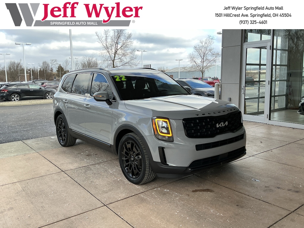 Jeff Wyler Springfield Auto Mall is pumped up to offer this stunning 2022 Kia Telluride EX in Wolf Gray. Well equipped with: EX Premium Package (20" x 7.5" Machined Alloy Wheels, 2nd Row Captain Chairs, LED Headlamps, and Satin Chrome Roof Rails), Nightfall Edition Package (Black Finish Radiator Grille, Exclusive Black Headlight Bezels, Front & Rear Gloss Black Finish Bumper Skid Plates, Gloss Black Finish Exterior Emblems, Gloss Black Finish Front & Rear Door Garnish, Gloss Black Finish Roof Rails, and Wheels: 20" x 7.5" Exclusive Black Alloy), 3.648 Axle Ratio, 3rd row seats: split-bench, 4-Wheel Disc Brakes, 6 Speakers, ABS brakes, Air Conditioning, Alloy wheels, AM/FM radio: SiriusXM, Apple CarPlay & Android Auto, Auto-dimming Rear-View mirror, Automatic temperature control, Brake assist, Bumpers: body-color, Carpeted Floor Mats, Compass, Delay-off headlights, Driver door bin, Driver vanity mirror, Dual front impact airbags, Dual front side impact airbags, Electronic Stability Control, Emergency communication system: 911 Connect, Four wheel independent suspension, Front anti-roll bar, Front Bucket Seats, Front Center Armrest, Front dual zone A/C, Front reading lights, Fully automatic headlights, Heated & Ventilated Front Bucket Seats, Heated door mirrors, Heated front seats, Heated steering wheel, Illuminated entry, Knee airbag, Leather Seat Trim, Leather Shift Knob, Leather steering wheel, Low tire pressure warning, Navigation System, Occupant sensing airbag, Outside temperature display, Overhead airbag, Overhead console, Panic alarm, Passenger door bin, Passenger vanity mirror, Power door mirrors, Power driver seat, Power Liftgate, Power moonroof, Power passenger seat, Power steering, Power windows, Radio data system, Radio: AM/FM Display Audio System, Rear air conditioning, Rear anti-roll bar, Rear audio controls, Rear reading lights, Rear seat center armrest, Rear window defroster, Rear window wiper, Reclining 3rd row seat, Remote keyless entry, Roof rack: rails only, Security system, Smart Key w/ Push Button and Remote Start, Speed control, Speed-sensing steering, Split folding rear seat, Spoiler, Steering wheel mounted audio controls, Tachometer, Telescoping steering wheel, Tilt steering wheel, Traction control, Trip computer, Turn signal indicator mirrors, Variably intermittent wipers, Ventilated front seats, and Wheels: 18" x 7.5" Machined Alloy. Ask about available certifications. Used vehicles 10 years of age or newer with less than 100,000 miles are eligible for the Wyler Assurance Program, but eligible vehicles must pass our reconditioning process and multi-point inspection. Provided the vehicle passes inspection, vehicles will be eligible for the 6 month/6,000 mile limited warranty. The 6 month/6,000 mile limited warranty is NOT available on AS-IS vehicles, wholesale vehicles, lease buyback/pass-thru vehicles or un-inspected vehicles. Note that this program can also apply to vehicles where the remaining factory coverage is less than 6 months or 6,000 miles. Please check the Federal Trade Commission (FTC) Buyers guide on the vehicle for full details as to whether or not warranty coverage may apply. Contact Dealer for additional details. The Wyler Assurance 6 month/6,000 Mile limited warranty ends 6 months from the date of the Retail Purchase Agreement (BUYERS ORDER) or when the vehicle's odometer registers 6,000 additional miles to the mileage listed on the BUYERS ORDER, whichever comes first. Your Deductible - The warranty holder on your contract pays the first $100 of each covered repair.