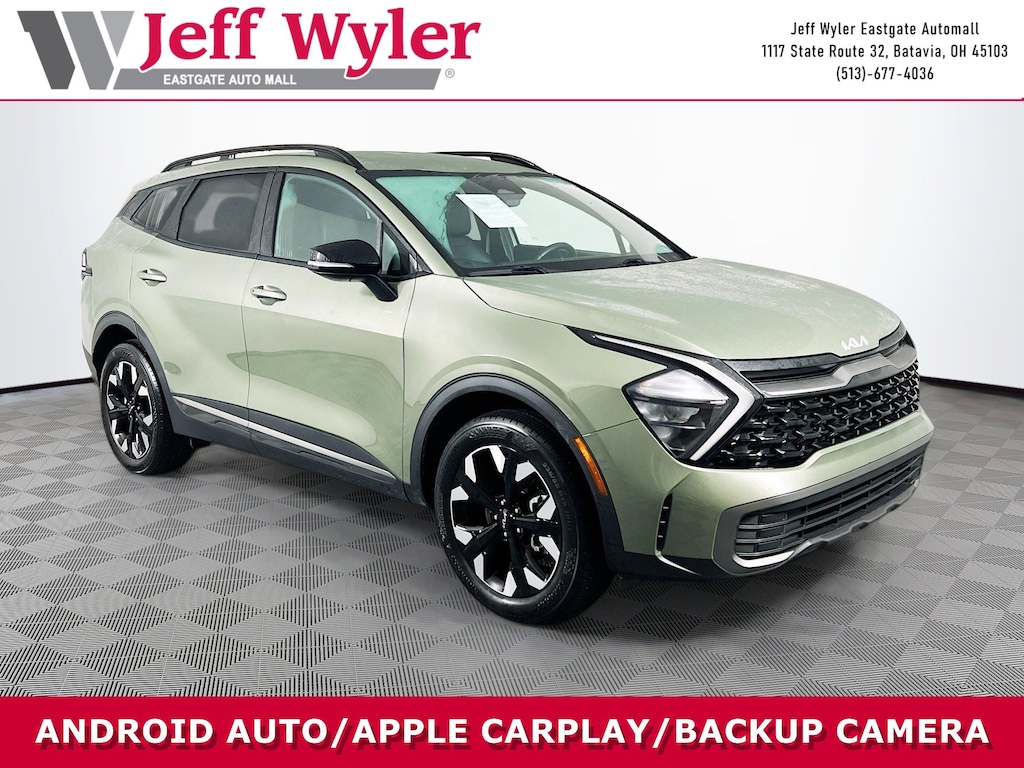 Jeff Wyler Eastgate Auto Mall is proud to offer this superb-looking 2023 Kia Sportage X-Line in Jungle Green. Well equipped with: 4-Wheel Disc Brakes, 6 Speakers, ABS brakes, Air Conditioning, Alloy wheels, AM/FM radio: SiriusXM, Apple CarPlay & Android Auto, Auto High-beam Headlights, Automatic temperature control, Axle Ratio: 3.648, Brake assist, Bumpers: body-color, Carpet Floor Mats X-Line, Compass, Delay-off headlights, Driver door bin, Driver vanity mirror, Dual front impact airbags, Dual front side impact airbags, Electronic Stability Control, Emergency communication system, Four wheel independent suspension, Front anti-roll bar, Front Bucket Seats, Front Center Armrest, Front dual zone A/C, Fully automatic headlights, harman/kardon® Speakers, Heated door mirrors, Heated Front Bucket Seats, Heated front seats, Illuminated entry, Leather Shift Knob, Leather steering wheel, Low tire pressure warning, Navigation System, Occupant sensing airbag, Outside temperature display, Overhead airbag, Overhead console, Panic alarm, Passenger door bin, Passenger vanity mirror, Power door mirrors, Power driver seat, Power steering, Power windows, Premium Leatherette Seat Trim, Radio: AM/FM/HD Audio System, Rain sensing wipers, Rear anti-roll bar, Rear seat center armrest, Rear window defroster, Rear window wiper, Remote keyless entry, Security system, Speed control, Speed-sensing steering, Split folding rear seat, Spoiler, Steering wheel mounted audio controls, Tachometer, Telescoping steering wheel, Tilt steering wheel, Traction control, Trip computer, Turn signal indicator mirrors, Variably intermittent wipers, and Wheels: 19" Gloss Black Alloy. CARFAX One-Owner. Clean CARFAX. Ask about available certifications. Used vehicles 10 years of age or newer with less than 100,000 miles are eligible for the Wyler Assurance Program, but eligible vehicles must pass our reconditioning process and multi-point inspection. Provided the vehicle passes inspection, vehicles will be eligible for the 6 month/6,000 mile limited warranty. The 6 month/6,000 mile limited warranty is NOT available on AS-IS vehicles, wholesale vehicles, lease buyback/pass-thru vehicles or un-inspected vehicles. Note that this program can also apply to vehicles where the remaining factory coverage is less than 6 months or 6,000 miles. Please check the Federal Trade Commission (FTC) Buyers guide on the vehicle for full details as to whether or not warranty coverage may apply. Contact Dealer for additional details. The Wyler Assurance 6 month/6,000 Mile limited warranty ends 6 months from the date of the Retail Purchase Agreement (BUYERS ORDER) or when the vehicle's odometer registers 6,000 additional miles to the mileage listed on the BUYERS ORDER, whichever comes first. Your Deductible - The warranty holder on your contract pays the first $100 of each covered repair.