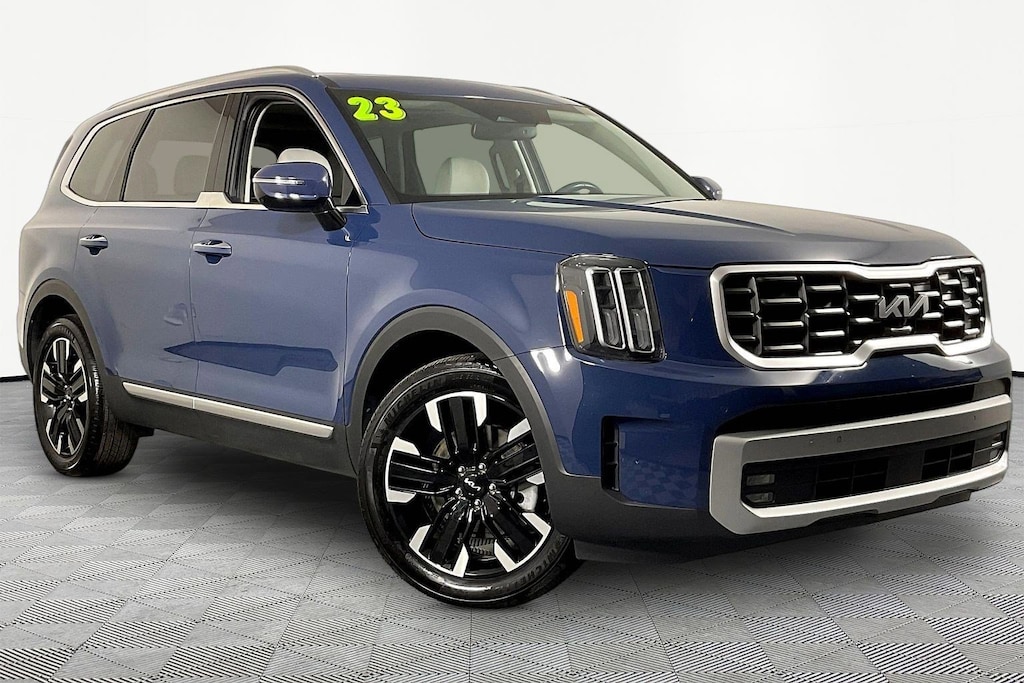 Only 9,527 Miles! Delivers 24 Highway MPG and 18 City MPG! This Kia Telluride delivers a Regular Unleaded V-6 3.8 L/231 engine powering this Automatic transmission. NAVY, LEATHER SEAT TRIM, MIDNIGHT LAKE BLUE, CARPET FLOOR MATS.