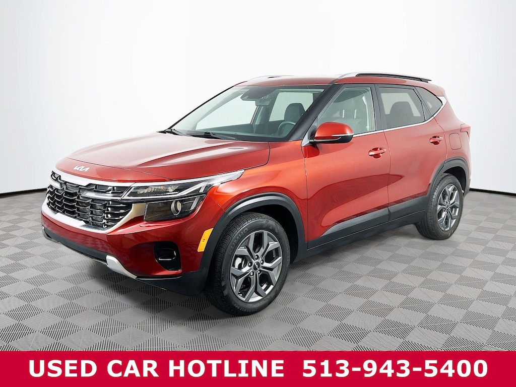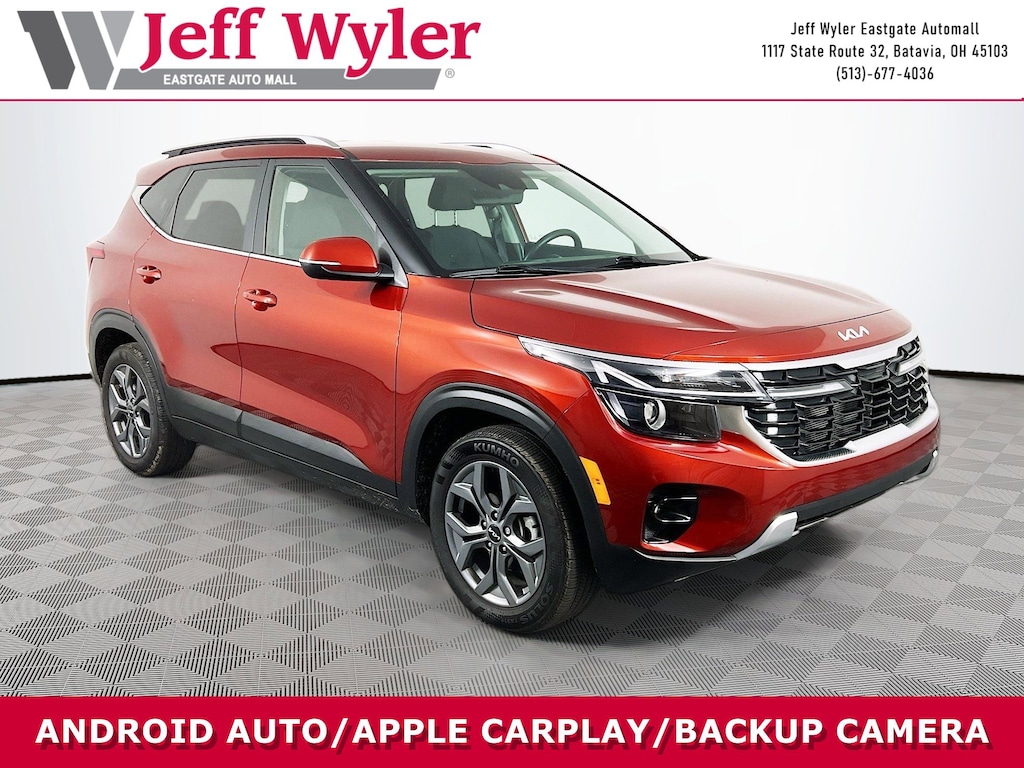 Jeff Wyler Eastgate Auto Mall is pumped up to offer this superb-looking 2024 Kia Seltos S in Mars Orange. Well equipped with: 4-Wheel Disc Brakes, 6 Speakers, 6.052 Axle Ratio, ABS brakes, Air Conditioning, Alloy wheels, AM/FM radio: SiriusXM, Apple CarPlay & Android Auto, Auto High-beam Headlights, Automatic temperature control, Brake assist, Bumpers: body-color, Carpet Floor Mats, Cloth & Sofino Premium Leatherette Seat Trim, Delay-off headlights, Driver door bin, Driver vanity mirror, Dual front impact airbags, Dual front side impact airbags, Electronic Stability Control, Emergency communication system: 911 Connect, Exterior Parking Camera Rear, Front anti-roll bar, Front Bucket Seats, Front Center Armrest, Front fog lights, Front reading lights, Front wheel independent suspension, Fully automatic headlights, Heated door mirrors, Illuminated entry, Leather Shift Knob, Leather steering wheel, Low tire pressure warning, Navigation System, Occupant sensing airbag, Outside temperature display, Overhead airbag, Overhead console, Panic alarm, Passenger door bin, Passenger vanity mirror, Power door mirrors, Power steering, Power windows, Radio: AM/FM/HD/Satellite Display System, Rear seat center armrest, Rear window defroster, Rear window wiper, Remote keyless entry, Security system, Speed control, Speed-sensing steering, Split folding rear seat, Spoiler, Steering wheel mounted audio controls, Tachometer, Telescoping steering wheel, Tilt steering wheel, Traction control, Trip computer, Turn signal indicator mirrors, Variably intermittent wipers, and Wheels: 17" Alloy w/Dark Gray Finish. CARFAX One-Owner. Ask about available certifications. Used vehicles 10 years of age or newer with less than 100,000 miles are eligible for the Wyler Assurance Program, but eligible vehicles must pass our reconditioning process and multi-point inspection. Provided the vehicle passes inspection, vehicles will be eligible for the 6 month/6,000 mile limited warranty. The 6 month/6,000 mile limited warranty is NOT available on AS-IS vehicles, wholesale vehicles, lease buyback/pass-thru vehicles or un-inspected vehicles. Note that this program can also apply to vehicles where the remaining factory coverage is less than 6 months or 6,000 miles. Please check the Federal Trade Commission (FTC) Buyers guide on the vehicle for full details as to whether or not warranty coverage may apply. Contact Dealer for additional details. The Wyler Assurance 6 month/6,000 Mile limited warranty ends 6 months from the date of the Retail Purchase Agreement (BUYERS ORDER) or when the vehicle's odometer registers 6,000 additional miles to the mileage listed on the BUYERS ORDER, whichever comes first. Your Deductible - The warranty holder on your contract pays the first $100 of each covered repair.