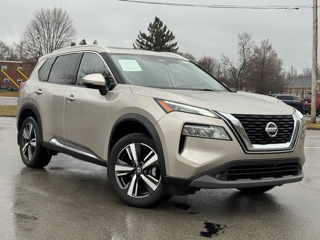 Jeff Wyler Nissan of Louisville is excited to offer this great 2021 Nissan Rogue SL in Champagne Silver Metallic. ** HOME DELIVERY OPTIONS! ** 19" Aluminum Alloy Wheels, 4-Wheel Disc Brakes, 5.604 Axle Ratio, 6 Speakers, ABS brakes, Air Conditioning, Alloy wheels, AM/FM Radio, AM/FM radio, Auto High-beam Headlights, Auto-dimming Rear-View mirror, Automatic temperature control, Black Splash Guards (Set of 4), Brake assist, Bumpers: body-color, Chrome Rear Bumper Protector, Delay-off headlights, Driver door bin, Driver vanity mirror, Dual front impact airbags, Dual front side impact airbags, Electronic Stability Control, Emergency communication system: NissanConnect Services, Exterior Parking Camera Rear, First Aid Kit, Floor Mats w/2-Piece Cargo Area Protector, Four wheel independent suspension, Front anti-roll bar, Front Bucket Seats, Front Center Armrest, Front dual zone A/C, Front fog lights, Front reading lights, Fully automatic headlights, Heated door mirrors, Heated Front Bucket Seats, Heated front seats, Heated steering wheel, Illuminated entry, Knee airbag, Leather steering wheel, Leather-Appointed Seat Trim, Low tire pressure warning, Memory seat, NissanConnect featuring Apple CarPlay and Android Auto, Occupant sensing airbag, Outside temperature display, Overhead airbag, Overhead console, Panic alarm, Passenger door bin, Passenger vanity mirror, Power door mirrors, Power driver seat, Power Liftgate, Power moonroof, Power passenger seat, Power steering, Power windows, Radio data system, Rear air conditioning, Rear anti-roll bar, Rear Parking Sensors, Rear seat center armrest, Rear side impact airbag, Rear window defroster, Rear window wiper, Remote keyless entry, Roof rack: rails only, Security system, Speed control, Speed-Sensitive Wipers, Split folding rear seat, Spoiler, Steering wheel mounted audio controls, Tachometer, Telescoping steering wheel, Tilt steering wheel, Traction control, Trip computer, Turn signal indicator mirrors, and Variably intermittent wipers Our PRE-OWNED vehicles are put through a rigorous 167- POINT QUALITY ASSURANCE INSPECTION along with an average amount of over $1,400.00 SPENT to recondition each vehicle so we can be sure to deliver you the highest quality vehicle like you deserve! ***ONLINE PRICE DOES NOT INCLUDE WYLER FAMILY FIRST PACKAGE*** Stop by 4136 Shelbyville Road to see for yourself, or give us a call @ 502-897-3151 to schedule your test drive!