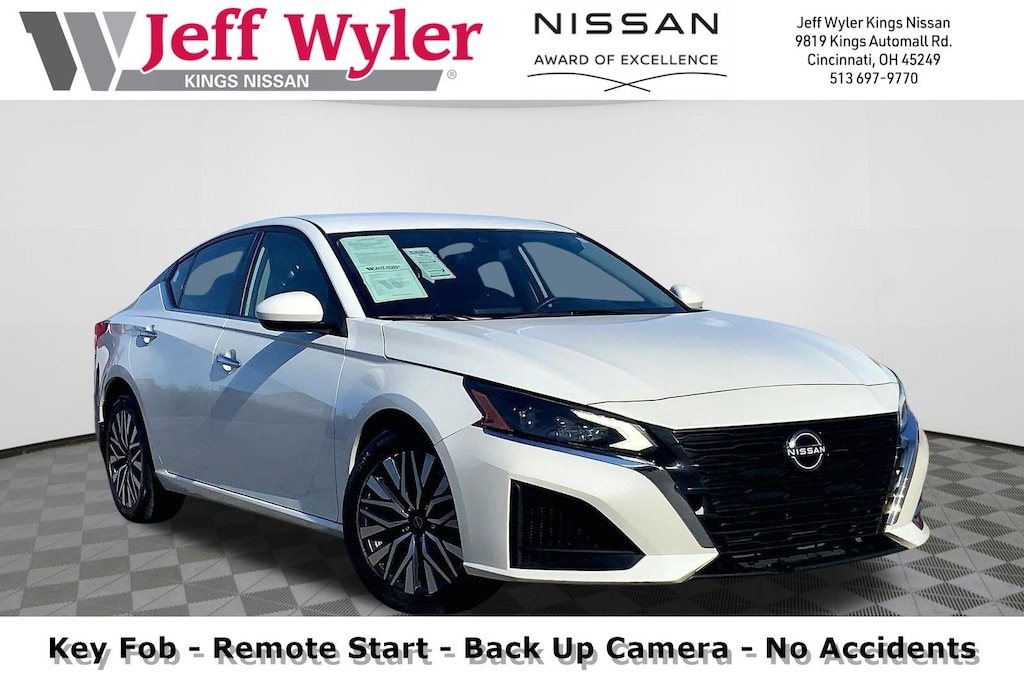Jeff Wyler Kings Nissan is very proud to offer this wonderful-looking 2023 Nissan Altima 2.5 SV in Pearl White Tricoat. Well equipped with: CVT with Xtronic, 17" Machined Alloy Wheels, 4-Wheel Disc Brakes, 6 Speakers, ABS brakes, Air Conditioning, Alloy wheels, AM/FM radio: SiriusXM, Auto High-beam Headlights, Blind Spot Warning, Body-Colored Splash Guards, Brake assist, Bumpers: body-color, Chrome Bumper Protector, Cloth Seat Trim, Delay-off headlights, Driver door bin, Driver vanity mirror, Dual front impact airbags, Dual front side impact airbags, Electronic Stability Control, Floor Mats/Trunk Mat/Hideaway Net, Four wheel independent suspension, Front anti-roll bar, Front Bucket Seats, Front Center Armrest, Front reading lights, Fully automatic headlights, Illuminated entry, Knee airbag, Low tire pressure warning, NissanConnect featuring Apple CarPlay and Android Auto, Occupant sensing airbag, Outside temperature display, Overhead airbag, Overhead console, Panic alarm, Passenger door bin, Passenger vanity mirror, Power door mirrors, Power driver seat, Power steering, Power windows, Radio data system, Radio: AM/FM Audio System, Rear anti-roll bar, Rear Parking Sensors, Rear reading lights, Rear seat center armrest, Rear side impact airbag, Rear window defroster, Remote keyless entry, Security system, Speed control, Speed-sensing steering, Speed-Sensitive Wipers, Split folding rear seat, Steering wheel mounted audio controls, Tachometer, Telescoping steering wheel, Tilt steering wheel, Traction control, Trip computer, Trunk Organizer Tray, and Variably intermittent wipers.Ask about available certifications.