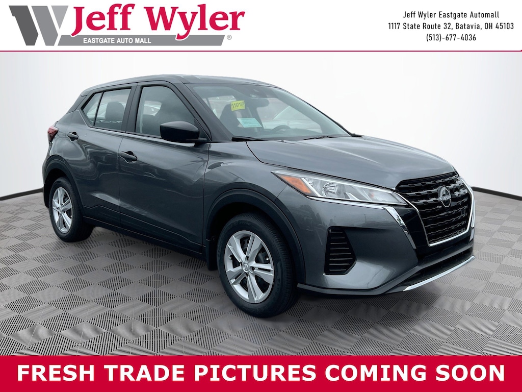 Jeff Wyler Eastgate Auto Mall is delighted to offer this good-looking 2025 Nissan Kicks Play S in Gun Metallic. Well equipped with: 6 Speakers, ABS brakes, Air Conditioning, AM/FM radio, Auto High-beam Headlights, Blind Spot Warning, Brake assist, Driver door bin, Driver vanity mirror, Driver's Seat Mounted Armrest, Dual front impact airbags, Dual front side impact airbags, Electronic Stability Control, Front anti-roll bar, Front Bucket Seats, Front reading lights, Front wheel independent suspension, Fully automatic headlights, Illuminated entry, Knee airbag, Low tire pressure warning, Occupant sensing airbag, Outside temperature display, Overhead airbag, Panic alarm, Passenger door bin, Passenger vanity mirror, Power door mirrors, Power steering, Power windows, Radio data system, Rear Parking Sensors, Rear reading lights, Rear side impact airbag, Rear window defroster, Rear window wiper, Remote keyless entry, Speed control, Split folding rear seat, Sport steering wheel, Steering wheel mounted audio controls, Tachometer, Telescoping steering wheel, Tilt steering wheel, Traction control, Trip computer, and Variably intermittent wipers. Clean CARFAX. Ask about available certifications. Used vehicles 10 years of age or newer with less than 100,000 miles are eligible for the Wyler Assurance Program, but eligible vehicles must pass our reconditioning process and multi-point inspection. Provided the vehicle passes inspection, vehicles will be eligible for the 6 month/6,000 mile limited warranty. The 6 month/6,000 mile limited warranty is NOT available on AS-IS vehicles, wholesale vehicles, lease buyback/pass-thru vehicles or un-inspected vehicles. Note that this program can also apply to vehicles where the remaining factory coverage is less than 6 months or 6,000 miles. Please check the Federal Trade Commission (FTC) Buyers guide on the vehicle for full details as to whether or not warranty coverage may apply. Contact Dealer for additional details. The Wyler Assurance 6 month/6,000 Mile limited warranty ends 6 months from the date of the Retail Purchase Agreement (BUYERS ORDER) or when the vehicle's odometer registers 6,000 additional miles to the mileage listed on the BUYERS ORDER, whichever comes first. Your Deductible - The warranty holder on your contract pays the first $100 of each covered repair.