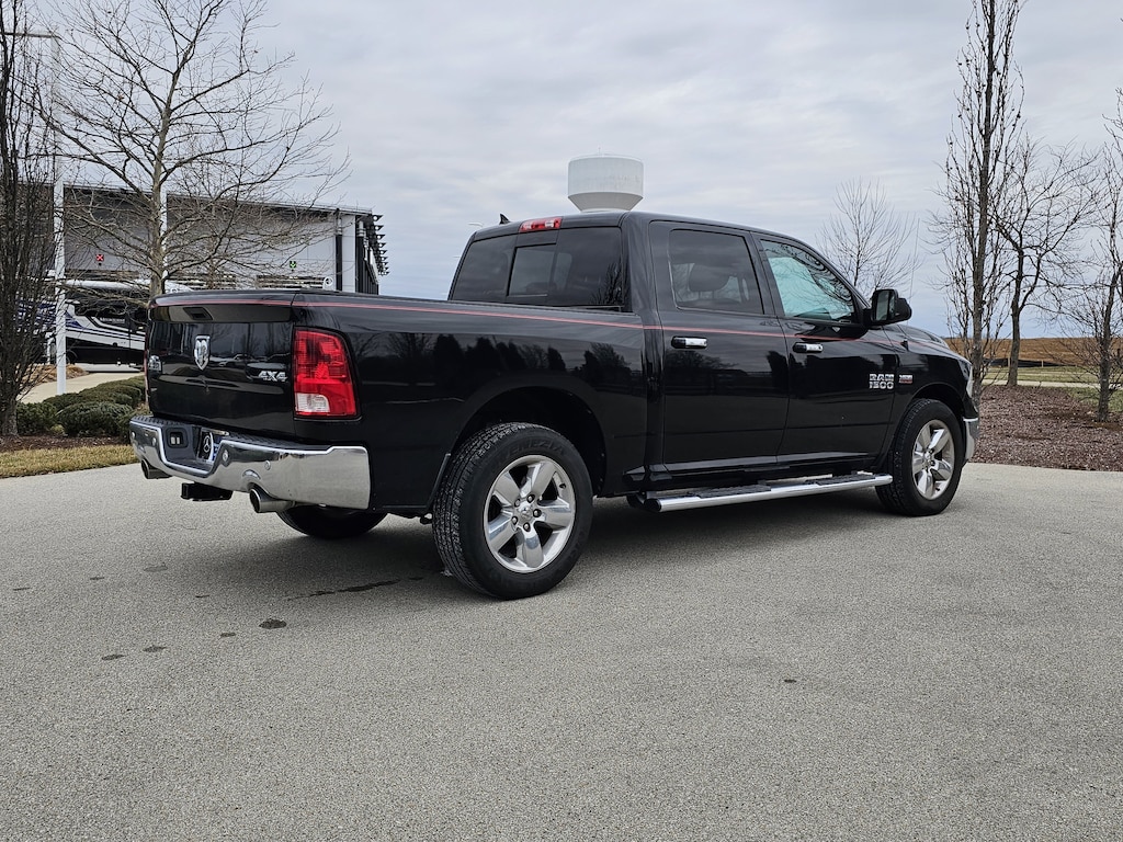 Black 2014 Ram 1500 Big Horn 4WD 8-Speed Automatic HEMI 5.7L V8 Multi Displacement VVT Ash Tray Lamp, Auto Dim Exterior Mirror, Auto-Dimming Exterior Passenger Mirror, Bighorn Badge, Bright/Bright Billets Grille, Class IV Receiver Hitch, Comfort Group, Electric Shift-On-Demand Transfer Case, Electroluminescent Instrument Cluster, Exterior Mirrors Courtesy Lamps, Exterior Mirrors w/Supplemental Signals, Fog Lamps, Glove Box Lamp, Heated Front Seats, Heated Steering Wheel, Leather Wrapped Steering Wheel, Luxury Group, Overhead Console w/Garage Door Opener, ParkSense Front/Rear Park Assist System, ParkView Rear Back-Up Camera, Power Folding Mirrors, Power Heated Fold-Away Mirrors, Premium Cloth 40/20/40 Bench Seat, Quick Order Package 26Z Big Horn, Rear Camera & Park Assist Group, Rear Dome w/On/Off Switch Lamp, Rear-View Auto-Dimming Mirror w/Microphone, Steering Wheel Mounted Audio Controls, Sun Visors w/Illuminated Vanity Mirrors, Trailer Brake Control, Trailer Tow Mirrors & Brake Group, Underhood Lamp, Wheels: 20" x 8" Aluminum Chrome Clad.