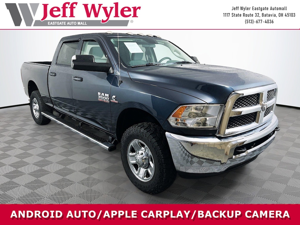 Jeff Wyler Eastgate Auto Mall is pleased to offer this terrific 2018 Ram 3500 Tradesman in Maximum Steel Metallic Clearcoat. Well equipped with: Chrome Appearance Group (Bright Front Bumper, Bright Grille, Bright Rear Bumper, and Wheels: 18" x 8.0" Steel Chrome Clad), Heavy Duty Snow Plow Prep Group, Popular Equipment Group (1-Year SiriusXM Radio Service, 40/20/40 Split Bench Seat, Carpet Floor Covering, Cloth 40/20/40 Bench Seat, Exterior Mirrors Courtesy Lamps, Exterior Mirrors w/Heating Element, Exterior Mirrors w/Supplemental Signals, For More Info, Call 800-643-2112, Front & Rear Floor Mats, Front Armrest w/Cupholders, Manual Adjust Seats, Rear Folding Seat, Remote Keyless Entry, SiriusXM Satellite Radio, and Storage Tray), Quick Order Package 28A Tradesman, 220 Amp Alternator, 4-Wheel Disc Brakes, 5.0" Touchscreen Display, 5th Wheel/Gooseneck Towing Prep Group, 6 Speakers, ABS brakes, Air Conditioning, AM/FM radio, Auto-dimming Rear-View mirror, Brake assist, Clearance Lamps, Delay-off headlights, Driver door bin, Dual front impact airbags, Dual front side impact airbags, Electronic Stability Control, Electronically Controlled Throttle, Front & Rear Rubber Floor Mats, Front anti-roll bar, Front Bumper Sight Shields, Front Center Armrest, Fully automatic headlights, GPS Antenna Input, HD Vinyl 40/20/40 Split Bench Seat, Heated door mirrors, Integrated Voice Command w/Bluetooth, Low tire pressure warning, Media Hub (USB, AUX), Mini Floor Console, Occupant sensing airbag, Overhead airbag, Overhead Console, ParkView Rear Back-Up Camera, Passenger door bin, Power door mirrors, Power steering, Power windows, Radio data system, Radio: 3.0, Radio: Uconnect 3 w/5" Display, Rear step bumper, Rear View Auto Dim Mirror w/Display, Remote USB Port - Charge Only, Speed control, Spray In Bedliner, Tachometer, Temperature & Compass Gauge, Tilt steering wheel, Tip Start, Traction control, Trailer Brake Control, Turn signal indicator mirrors, Variably intermittent wipers, Vendor Painted Cargo Box Tracking, Voltmeter, Wheel to Wheel Side Steps, and Wheels: 18" x 8.0" Steel. Ask about available certifications. Used vehicles 10 years of age or newer with less than 100,000 miles are eligible for the Wyler Assurance Program, but eligible vehicles must pass our reconditioning process and multi-point inspection. Provided the vehicle passes inspection, vehicles will be eligible for the 6 month/6,000 mile limited warranty. The 6 month/6,000 mile limited warranty is NOT available on AS-IS vehicles, wholesale vehicles, lease buyback/pass-thru vehicles or un-inspected vehicles. Note that this program can also apply to vehicles where the remaining factory coverage is less than 6 months or 6,000 miles. Please check the Federal Trade Commission (FTC) Buyers guide on the vehicle for full details as to whether or not warranty coverage may apply. Contact Dealer for additional details. The Wyler Assurance 6 month/6,000 Mile limited warranty ends 6 months from the date of the Retail Purchase Agreement (BUYERS ORDER) or when the vehicle's odometer registers 6,000 additional miles to the mileage listed on the BUYERS ORDER, whichever comes first. Your Deductible - The warranty holder on your contract pays the first $100 of each covered repair.