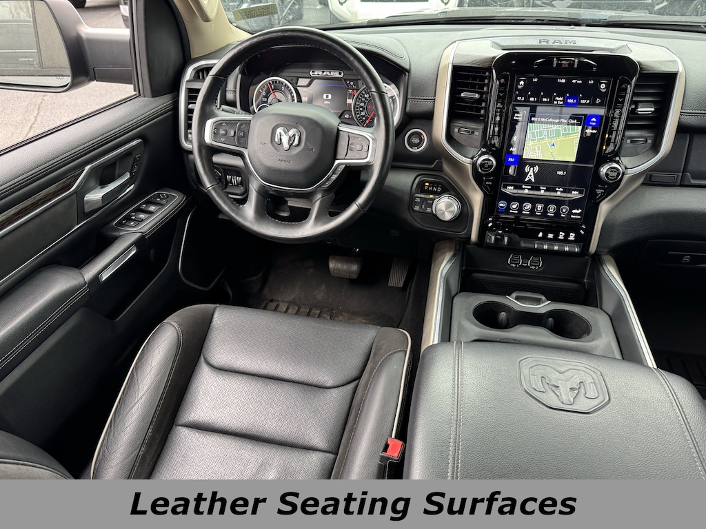 Recent Arrival! 21/29 City/Highway MPG Clean CARFAX.Awards: * JD Power Automotive Performance, Execution and Layout (APEAL) Study Bed Utility Group (Spray In Bedliner), Laramie Level 1 Equipment Group (Auto High Beam Headlamp Control, Blind Spot & Cross Path Detection, Foam Bottle Insert (Door Trim Panel), Rain Sensitive Windshield Wipers, Rear 60/40 Folding Split Recline Seat, Remote Tailgate Release, and Tailgate Ajar Warning Lamp), Quick Order Package 28H Laramie, #1 Seat Foam Cushion, 1-Yr SiriusXM Guardian Trial, 10 Speakers, 12 Touchscreen Display, 3 Rear Seat Head Restraints, 4 Way Front Headrests, 4-Wheel Disc Brakes, 48V Belt Starter Generator, 4G LTE Wi-Fi Hot Spot, 5-Year SiriusXM Traffic Service, 5-Year SiriusXM Travel Link Service, 8.4 Touchscreen Display, ABS brakes, Adjustable pedals, Air Conditioning, Alloy wheels, AM/FM radio: SiriusXM, Anti-Spin Differential Rear Axle, Apple CarPlay, Apple CarPlay/Android Auto, Audio memory, Auto-dimming door mirrors, Auto-dimming Rear-View mirror, Automatic temperature control, Brake assist, Bumpers: chrome, Compass, Delay-off headlights, Disassociated Touchscreen Display, Driver door bin, Driver Seat Memory, Driver vanity mirror, Dual front impact airbags, Dual front side impact airbags, Electronic Stability Control, For Details, Visit DriveUconnect.com, Front anti-roll bar, Front Center Armrest w/Storage, Front dual zone A/C, Front fog lights, Front reading lights, Front Seat Back Map Pockets, Front wheel independent suspension, Fully automatic headlights, Garage door transmitter, Google Android Auto, GPS Antenna Input, GPS Navigation, HD Radio, Heated door mirrors, Heated Front Seats, Heated front seats, Heated Steering Wheel, Heated steering wheel, Illuminated entry, Integrated Center Stack Radio, Leather steering wheel, Leather Trim 40/20/40 Bench Seat, Low tire pressure warning, Memory seat, Occupant sensing airbag, Outside temperature display, Overhead airbag, Overhead console, Panic alarm, ParkSense Front/Rear Park Assist w/Stop (DISC), ParkView Rear Back-Up Camera, Passenger door bin, Passenger vanity mirror, Pedal memory, Power 4-Way Driver Lumbar Adjust, Power 4-Way Passenger Lumbar Adjust, Power 8-Way Driver & Passenger Seats, Power door mirrors, Power driver seat, Power passenger seat, Power steering, Power windows, Radio data system, Radio: Uconnect 12 w/Navigation, Radio: Uconnect 4 w/8.4 Display, Rear anti-roll bar, Rear seat center armrest, Rear step bumper, Rear Wheelhouse Liners, Rear window defroster, Remote keyless entry, Security system, SiriusXM Satellite Radio, SiriusXM Traffic Plus, SiriusXM Travel Link, SiriusXM w/360L, Speed control, Split folding rear seat, Steering wheel mounted audio controls, Tachometer, Telescoping steering wheel, Tilt steering wheel, Traction control, Trailer Brake Control, Trip computer, Turn signal indicator mirrors, USB Host Flip, Variably intermittent wipers, Ventilated Front Seats, Ventilated front seats, Voltmeter, Wheels: 18 x 8 Aluminum Base Painted, and Wheels: 20 x 9 Premium Paint/PolisheD.