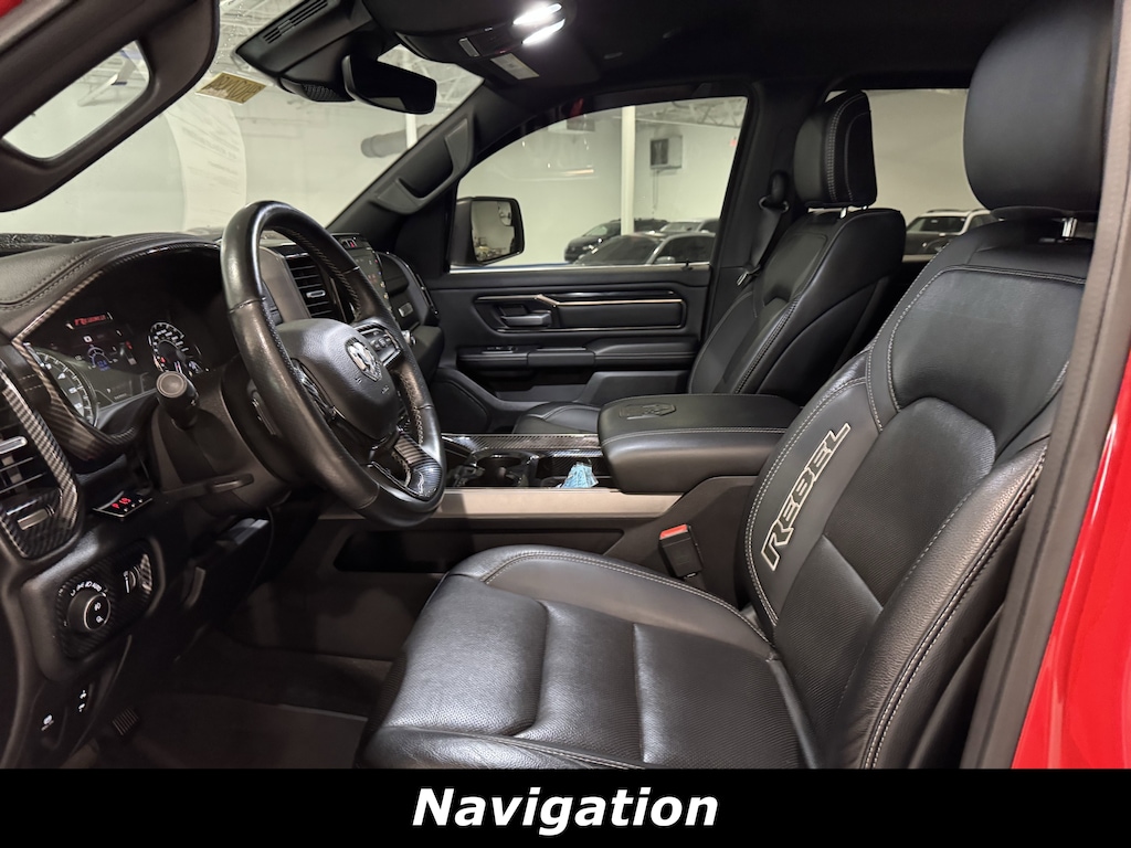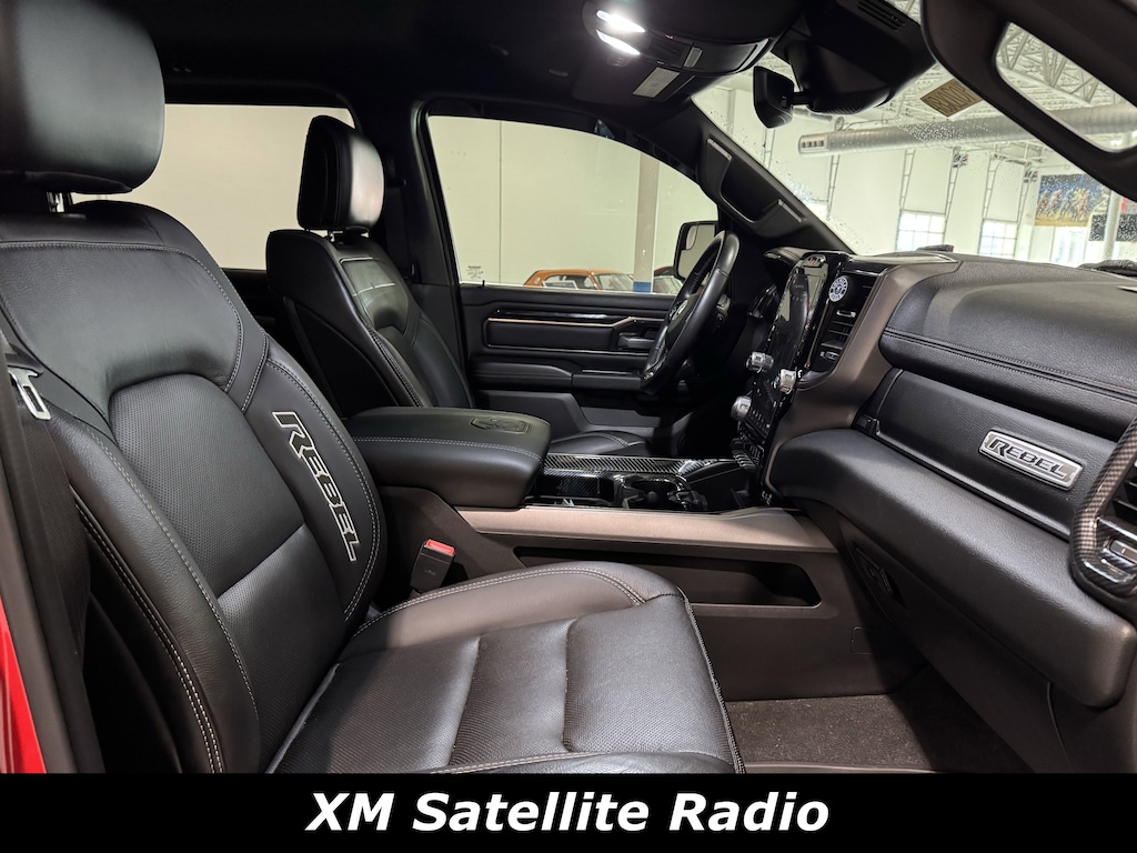 4WD/AWD, XM Radio, Bluetooth, Dual climate Control, Heated Leather Seats, Navigation, Push Button Start, Backup Camera, V8 Engine, CLEAN CARFAX, 1-Yr SiriusXM Guardian Trial, 115V Auxiliary Rear Power Outlet, 12" Touchscreen Display, 3.92 Rear Axle Ratio, 4 Way Front Headrests, 4-Wheel Disc Brakes, 48V Belt Starter Generator, 4G LTE Wi-Fi Hot Spot, 5-Year SiriusXM Traffic Service, 5-Year SiriusXM Travel Link Service, 6 Speakers, 9 Amplified Speakers w/Subwoofer, ABS brakes, Air Conditioning, Alloy wheels, AM/FM radio: SiriusXM, Apple CarPlay, Auto-Dimming Exterior Driver Mirror, Auto-dimming Rear-View mirror, Black Exterior Mirrors, Black Front Bumper w/Black Plate, Black Premium Power Mirrors, Body Color Door Handles, Brake assist, Bucket Seats, Cloth/Vinyl Low Back Bucket Seats, Compass, Delay-off headlights, Disassociated Touchscreen Display, Driver door bin, Dual front impact airbags, Dual front side impact airbags, Electric Shift-On-Demand Transfer Case, Electronic Stability Control, Exterior Mirrors Courtesy Lamps, Exterior Mirrors w/Supplemental Signals, Foam Bottle Insert (Door Trim Panel), For Details, Visit DriveUconnect.com, For More Info, Call 800-643-2112, Front anti-roll bar, Front Bucket Seats, Front Center Armrest w/Storage, Front fog lights, Front reading lights, Front Seat Back Map Pockets, Front wheel independent suspension, Full Length Upgraded Floor Console, Fully automatic headlights, Google Android Auto, GPS Antenna Input, GPS Navigation, Grille Moustache Black Outline Texture 3, HD Radio, Heated door mirrors, Heated Front Seats, Heated Steering Wheel, Illuminated entry, Instrument Cluster Theme 5 - Rebel 2, Integrated Center Stack Radio, Integrated Voice Command w/Bluetooth, Leather steering wheel, LED Footwell Lighting, Low tire pressure warning, Lux Leather Trimmed Bucket Seats, Media Hub w/2 Charge Only USBs, Night Edition, Occupant sensing airbag, Outside temperature display, Overhead airbag, Overhead console, Panic alarm, ParkSense Front/Rear Park Assist w/Stop, ParkView Rear Back-Up Camera, Passenger door bin, Passenger vanity mirror, Power 4-Way Driver Lumbar Adjust, Power 4-Way Passenger Lumbar Adjust, Power 8-Way Driver & Passenger Seats, Power Adjustable Pedals, Power door mirrors, Power driver seat, Power steering, Power windows, Power-Folding Mirrors, Quick Order Package 27W Rebel, Radio data system, Radio: Uconnect 12 w/Navigation, Radio: Uconnect 3 w/5" Display, Radio: Uconnect 4 w/8.4" Display, Rain Sensitive Windshield Wipers, RAM Grille Badge - Black, Rear 60/40 Folding Seat, Rear anti-roll bar, Rear Dome w/On/Off Switch Lamp, Rear seat center armrest, Rear step bumper, Rear Underseat Compartment Storage, Rear Wheelhouse Liners, Rear Window Defroster, Rebel 12A, Rebel Level 2 Equipment Group, Remote keyless entry, Remote Proximity Keyless Entry, Remote Start System, Security Alarm, SiriusXM Radio Service, SiriusXM Satellite Radio, SiriusXM Traffic Plus, SiriusXM Travel Link, SiriusXM w/360L, Speed control, Split folding rear seat, Steering wheel mounted audio controls, Sun Visors w/Illuminated Vanity Mirrors, Tachometer, Telescoping steering wheel, Tilt steering wheel, Traction control, Trailer Brake Control, Trip computer, Universal Garage Door Opener, USB Host Flip, Variably intermittent wipers, Voltmeter, Wheels: 18" x 8.0" Gloss Black, Wheels: 18" x 8.0" Painted Mid-Gloss Black. CARFAX One-Owner. 4WD 8-Speed Automatic HEMI 5.7L V8 Multi Displacement VVTRecent Arrival!15/21 City/Highway MPGAwards: * JD Power Automotive Performance, Execution and Layout (APEAL) Study * Motor Trend Automobiles of the yearAsk about available certifications.