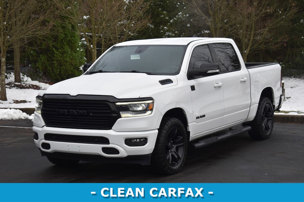 ONE OWNER, ALL WHEEL DRIVE, PASSED OUR SAFETY INSPECTION, SERVICE RECORDS AVAILABLE, 115V Auxiliary Power Outlet, 115V Auxiliary Rear Power Outlet, 2nd Row In Floor Storage Bins, 3 Rear Seat Head Restraints, 3.21 Rear Axle Ratio, 4 Way Front Headrests, 4-Wheel Disc Brakes, 40/20/40 Split Bench Seat, 400W Inverter, 48V Belt Starter Generator, 6 Speakers, ABS brakes, Accent Color Premium Power Mirrors, Add Class IV Receiver Hitch, Air Conditioning, Air Conditioning ATC w/Dual Zone Control, Alloy wheels, AM/FM radio, Anti-Spin Differential Rear Axle, Auto-Dimming Exterior Driver Mirror, Auto-Dimming Rear-View Mirror, Bed Utility Group, Big Horn Badge, Big Horn Level 2 Equipment Group, Black Exterior Mirrors, Black Exterior Truck Badging, Black Headlamp Bezels, Black Interior Accents, Black Painted Exterior Mirrors Caps, Black Premium Power Mirrors, Body Color Front Bumper, Body Color Rear Bumper w/Step Pads, Brake assist, Bumpers: chrome, Class IV Receiver Hitch, Cloth Bench Seat, Cluster 7.0" TFT Color Display, Compass, Delay-off headlights, Deluxe Cloth Bucket Seats, Driver door bin, Dual Exhaust w/Black Tips, Dual front impact airbags, Dual front side impact airbags, Electronic Stability Control, Exterior Mirrors Courtesy Lamps, Exterior Mirrors w/Memory, Exterior Mirrors w/Supplemental Signals, Foam Bottle Insert (Door Trim Panel), For More Info, Call 800-643-2112, Front anti-roll bar, Front Center Armrest w/Storage, Front fog lights, Front LED Fog Lamps, Front reading lights, Front Seat Back Map Pockets, Front wheel independent suspension, Fully automatic headlights, Glove Box Lamp, GPS Antenna Input, Heated door mirrors, Heated Front Seats, Heated Steering Wheel, Illuminated entry, Integrated Voice Command w/Bluetooth, Leather steering wheel, LED Reflector Headlamps, LED Taillamps, Low tire pressure warning, Media Hub w/2 Charge Only USBs, MOPAR 4 Adjustable Cargo Tie-Down Hooks, MOPAR Deployable Bed Step, MOPAR Spray In Bedliner, Night Edition, Occupant sensing airbag, Outside temperature display, Overhead airbag, Overhead console, Panic alarm, ParkSense Front/Rear Park Assist w/Stop, ParkView Rear Back-Up Camera, Passenger door bin, Passenger vanity mirror, Pick-Up Box Lighting, Power 4-Way Driver Lumbar Adjust, Power 8-Way Driver Seat, Power Adjustable Pedals, Power door mirrors, Power steering, Power windows, Power-Folding Mirrors, Premium Lighting Group, Quick Order Package 27Z Big Horn, Radio data system, Radio: Uconnect 3 w/5" Display, Radio: Uconnect 4 w/8.4" Display, Rear 60/40 Folding Seat, Rear anti-roll bar, Rear Dome w/On/Off Switch Lamp, Rear Power Sliding Window, Rear seat center armrest, Rear step bumper, Rear Window Defroster, Remote keyless entry, Remote Start System, Security Alarm, SiriusXM Radio Service, Speed control, Split folding rear seat, Steering wheel mounted audio controls, Sun Visors w/Illuminated Vanity Mirrors, Tachometer, Telescoping steering wheel, Tilt steering wheel, Traction control, Trailer Brake Control, Trailer Light Check, Trailer Reverse Steering Control, Trailer Tire Pressure Monitoring System, Trailer Tow Group, Trip computer, Universal Garage Door Opener, Variably intermittent wipers, Voltmeter, Wheels: 18" x 8" Cast-Aluminum Painted, Wheels: 20" x 9.0" Premium Paint/Polished.Used vehicles 10 years of age or newer with less than 100,000 miles are eligible for the Wyler Assurance Program, but eligible vehicles must pass our reconditioning process and multi-point inspection. Provided the vehicle passes inspection, vehicles will be eligible for the 6 month/6,000 mile limited warranty. The 6 month/6,000 mile limited warranty is NOT available on AS-IS vehicles, wholesale vehicles, lease buyback/pass-thru vehicles or un-inspected vehicles. Note that this program can also apply to vehicles where the remaining factory coverage is less than 6 months or 6,000 miles. Please check the Federal Trade Commission (FTC) Buyers guide on the vehicle for full details as to whether or not warranty