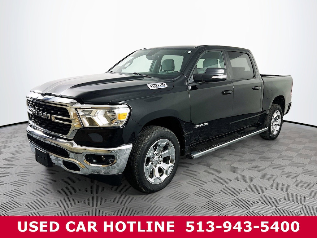 Jeff Wyler Eastgate Auto Mall is pleased to offer this great-looking 2022 Ram 1500 Big Horn/Lone Star in Diamond Black Crystal Pearlcoat. Well equipped with: Big Horn Level 2 Equipment Group (115V Auxiliary Power Outlet, 115V Auxiliary Rear Power Outlet, 2nd Row In Floor Storage Bins, 400W Inverter, 4G LTE Wi-Fi Hot Spot, 8.4" Touchscreen Display, Air Conditioning ATC w/Dual Zone Control, Apple CarPlay, Auto-Dimming Exterior Driver Mirror, Auto-Dimming Rear-View Mirror, Black Exterior Mirrors, Black Premium Power Mirrors, Bluetooth Handsfree Phone & Audio, Class IV Receiver Hitch, Cluster 7.0" TFT Color Display, Connectivity - US/Canada, Convex Wide-Angle Mirror Insert, Exterior Mirrors Courtesy Lamps, Exterior Mirrors w/Heating Element, Exterior Mirrors w/Supplemental Signals, For Details, Visit DriveUconnect.com, Global Telematics Box Module (TBM), Glove Box Lamp, Google Android Auto, GPS Antenna Input, Heated Front Seats, Heated Steering Wheel, Integrated Center Stack Radio, Media Hub w/2 Charge Only USBs, ParkSense Front/Rear Park Assist w/Stop, Power 2-Way Driver Lumbar Adjust, Power 8-Way Driver Seat, Power Adjustable Pedals, Power-Folding Mirrors, Radio: Uconnect 5 W w/8.4" Display, Rear Dome w/On/Off Switch Lamp, Rear Power Sliding Window, Rear Window Defroster, Remote Start System, Security Alarm, SiriusXM Radio Service, SiriusXM Satellite Radio, Sun Visors w/Illuminated Vanity Mirrors, Universal Garage Door Opener, and USB Host Flip), Quick Order Package 27Z Big Horn (Big Horn Badge), 3 Rear Seat Head Restraints, 3.21 Rear Axle Ratio, 4 Way Front Headrests, 4-Wheel Disc Brakes, 48V Belt Starter Generator, 6 Speakers, ABS brakes, Air Conditioning, Alloy wheels, AM/FM radio, Brake assist, Bumpers: chrome, Cloth Bench Seat, Compass, Connected Services Delete Credit, Delay-off headlights, Driver door bin, Dual front impact airbags, Dual front side impact airbags, Electronic Stability Control, Emergency communication system: SiriusXM Guardian, Front anti-roll bar, Front Center Armrest w/Storage, Front fog lights, Front License Plate Bracket, Front reading lights, Front Seat Back Map Pockets, Front wheel independent suspension, Fully automatic headlights, Heated door mirrors, Heavy-Duty Engine Cooling, Illuminated entry, Integrated Voice Command w/Bluetooth, Leather steering wheel, Low tire pressure warning, MOPAR Front & Rear Rubber Floor Mats, Occupant sensing airbag, Outside temperature display, Overhead airbag, Overhead console, Panic alarm, ParkView Rear Back-Up Camera, Passenger door bin, Passenger vanity mirror, Power door mirrors, Power steering, Power windows, Radio data system, Radio: Uconnect 3 w/5" Display, Rear 60/40 Folding Seat, Rear anti-roll bar, Rear seat center armrest, Rear step bumper, Remote keyless entry, Speed control, Split folding rear seat, Steering wheel mounted audio controls, Tachometer, Telescoping steering wheel, Tilt steering wheel, Traction control, Trip computer, Variably intermittent wipers, Voltmeter, Wheel to Wheel Side Steps, Wheels: 18" x 8" Cast-Aluminum Painted, and Wheels: 20" x 9" Aluminum Chrome Clad (WRK) CARFAX One-Owner. Clean CARFAX. Ask about available certifications. Used vehicles 10 years of age or newer with less than 100,000 miles are eligible for the Wyler Assurance Program, but eligible vehicles must pass our reconditioning process and multi-point inspection. Provided the vehicle passes inspection, vehicles will be eligible for the 6 month/6,000 mile limited warranty. The 6 month/6,000 mile limited warranty is NOT available on AS-IS vehicles, wholesale vehicles, lease buyback/pass-thru vehicles or un-inspected vehicles. Note that this program can also apply to vehicles where the remaining factory coverage is less than 6 months or 6,000 miles. Please check the Federal Trade Commission (FTC) Buyers guide on the vehicle for full details as to whether or not warranty coverage may apply. Contact Dealer for additional details. The Wyler Assurance 6 month/6,000 Mile limited