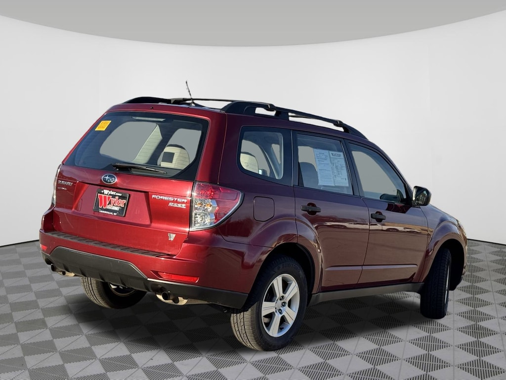 Jeff Wyler Nissan of Louisville is very proud to offer this fantastic-looking 2013 Subaru Forester 2.5X in Camellia Red Pearl. ** HOME DELIVERY OPTIONS! ** Alloy Wheel Value Package (16" x 6.5JJ Aluminum Alloy Wheels and Black Roof Rails), 16" x 6.5JJ Steel Wheels w/Full Covers, 4 Speakers, 4-Wheel Disc Brakes, 4.44 Axle Ratio, ABS brakes, Air Conditioning, All Weather Floor Mats, AM/FM radio, AM/FM Stereo w/Single Disc CD Player, Anti-whiplash front head restraints, Black Cargo Tray, Brake assist, Bumpers: body-color, CD player, Cloth Upholstery, Driver door bin, Driver vanity mirror, Dual front impact airbags, Dual front side impact airbags, Electronic Stability Control, Four wheel independent suspension, Front anti-roll bar, Front Bucket Seats, Front Center Armrest, Front reading lights, Illuminated entry, Low tire pressure warning, Luggage Compartment Cover, Occupant sensing airbag, Outside temperature display, Overhead airbag, Overhead console, Panic alarm, Passenger door bin, Passenger vanity mirror, Power door mirrors, Power steering, Power windows, Radio data system, Rear anti-roll bar, Rear Bumper Cover, Rear seat center armrest, Rear window defroster, Rear window wiper, Remote keyless entry, Security system, Speed control, Split folding rear seat, Steering wheel mounted audio controls, Tachometer, Tilt steering wheel, Traction control, Trip computer, and Variably intermittent wipers Our PRE-OWNED vehicles are put through a rigorous 167- POINT QUALITY ASSURANCE INSPECTION along with an average amount of over $1,400.00 SPENT to recondition each vehicle so we can be sure to deliver you the highest quality vehicle like you deserve! ***ONLINE PRICE DOES NOT INCLUDE WYLER FAMILY FIRST PACKAGE*** Stop by 4136 Shelbyville Road to see for yourself, or give us a call @ 502-897-3151 to schedule your test drive!