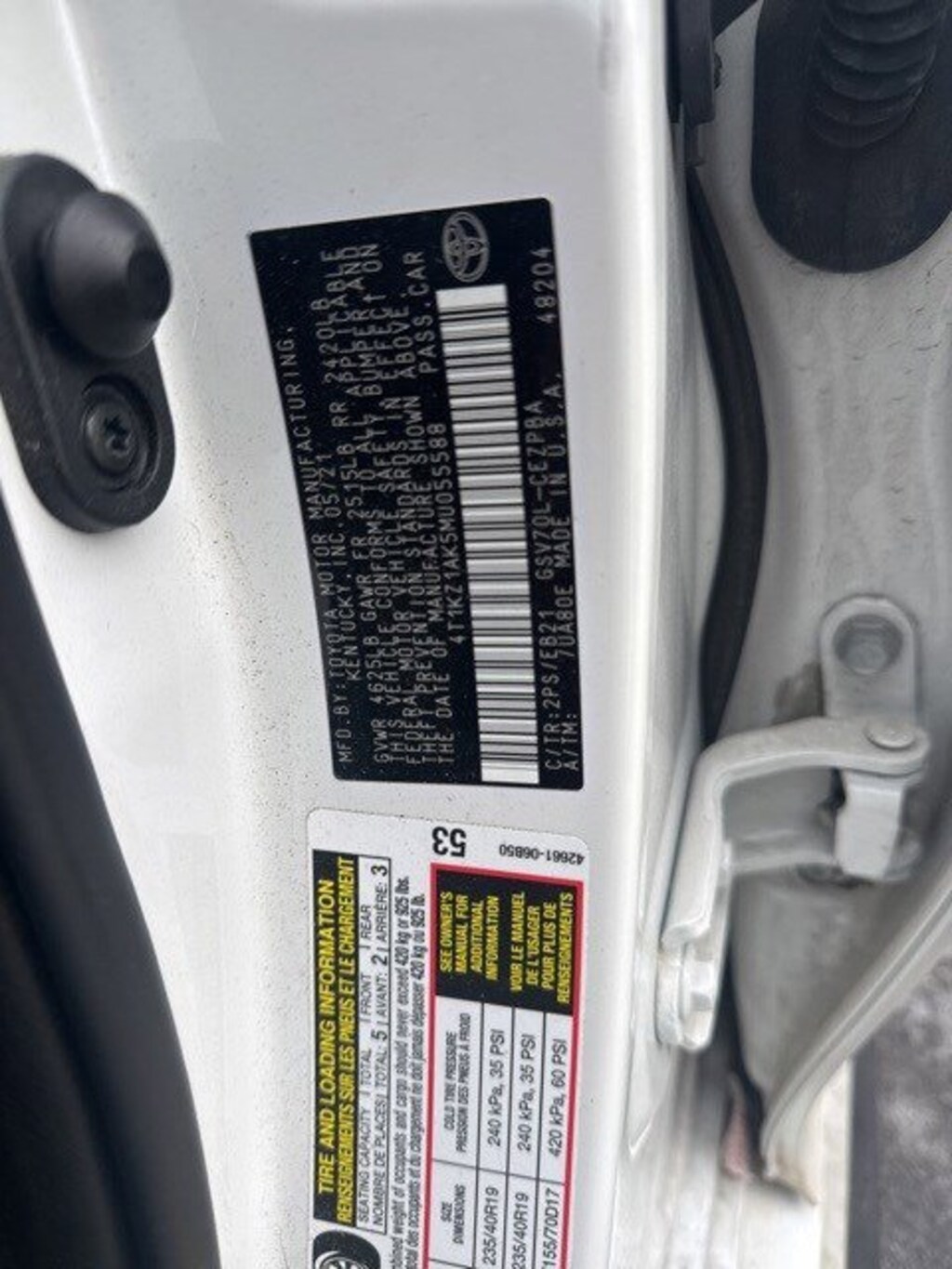 - 4T1KZ1AK5MU055588