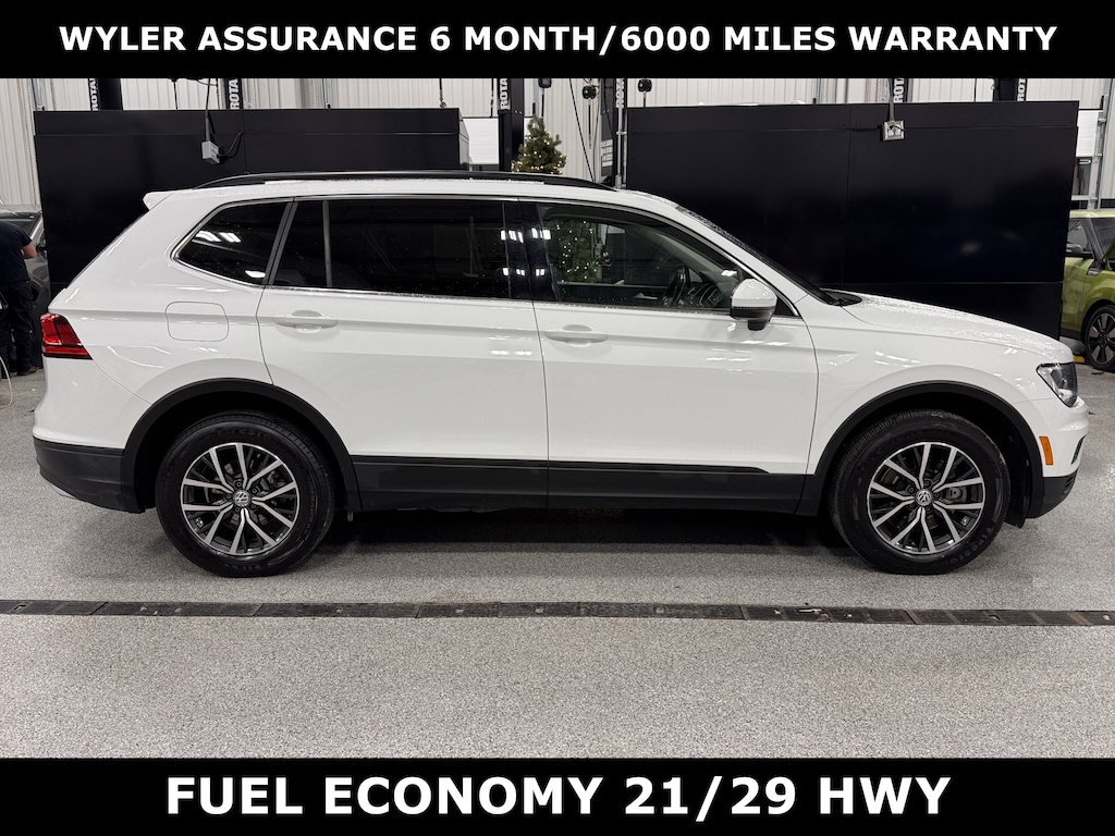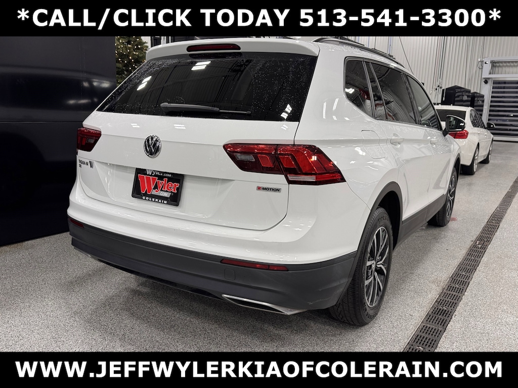 Jeff Wyler Kia of Colerain is honored to offer this great-looking 2019 Volkswagen Tiguan 2.0T SE in Pure White. 3.33 Axle Ratio, 4-Wheel Disc Brakes, 4-Wheel Independent Suspension, 6 Speakers, ABS brakes, Air Conditioning, Alloy wheels, AM/FM radio: SiriusXM, Automatic temperature control, Brake assist, Bumpers: body-color, Compass, Delay-off headlights, Driver door bin, Driver vanity mirror, Dual front impact airbags, Dual front side impact airbags, Electronic Stability Control, Exterior Parking Camera Rear, Forward collision: FCW w/Autonomous Emergency Braking mitigation, Four wheel independent suspension, Front anti-roll bar, Front Bucket Seats, Front Center Armrest, Front dual zone A/C, Front reading lights, Fully automatic headlights, Heated door mirrors, Heated Front Comfort Seats, Heated front seats, Illuminated entry, Leather Shift Knob, Low tire pressure warning, Occupant sensing airbag, Outside temperature display, Overhead airbag, Overhead console, Panic alarm, Passenger door bin, Passenger vanity mirror, Perforated V-Tex Leatherette Seating Surfaces, Power door mirrors, Power driver seat, Power steering, Power windows, Radio data system, Radio: Composition Media AM/FM/HD, Rear anti-roll bar, Rear reading lights, Rear seat center armrest, Rear window defroster, Rear window wiper, Remote CD player, Remote keyless entry, Roof rack: rails only, Security system, Speed control, Speed-sensing steering, Split folding rear seat, Spoiler, Steering wheel mounted audio controls, Tachometer, Telescoping steering wheel, Tilt steering wheel, Traction control, Trip computer, Turn signal indicator mirrors, Variably intermittent wipers, and Wheels: 17" Wide Multi-Spoke 2-Tone Alloy Our PRE-OWNED vehicles are put through a rigorous 167- POINT QUALITY ASSURANCE INSPECTION along with an average amount of over $1,400.00 SPENT to recondition each vehicle so we can be sure to deliver you the highest quality vehicle like you deserve! ***ONLINE PRICE DOES NOT INCLUDE WYLER FAMILY FIRST PACKAGE***